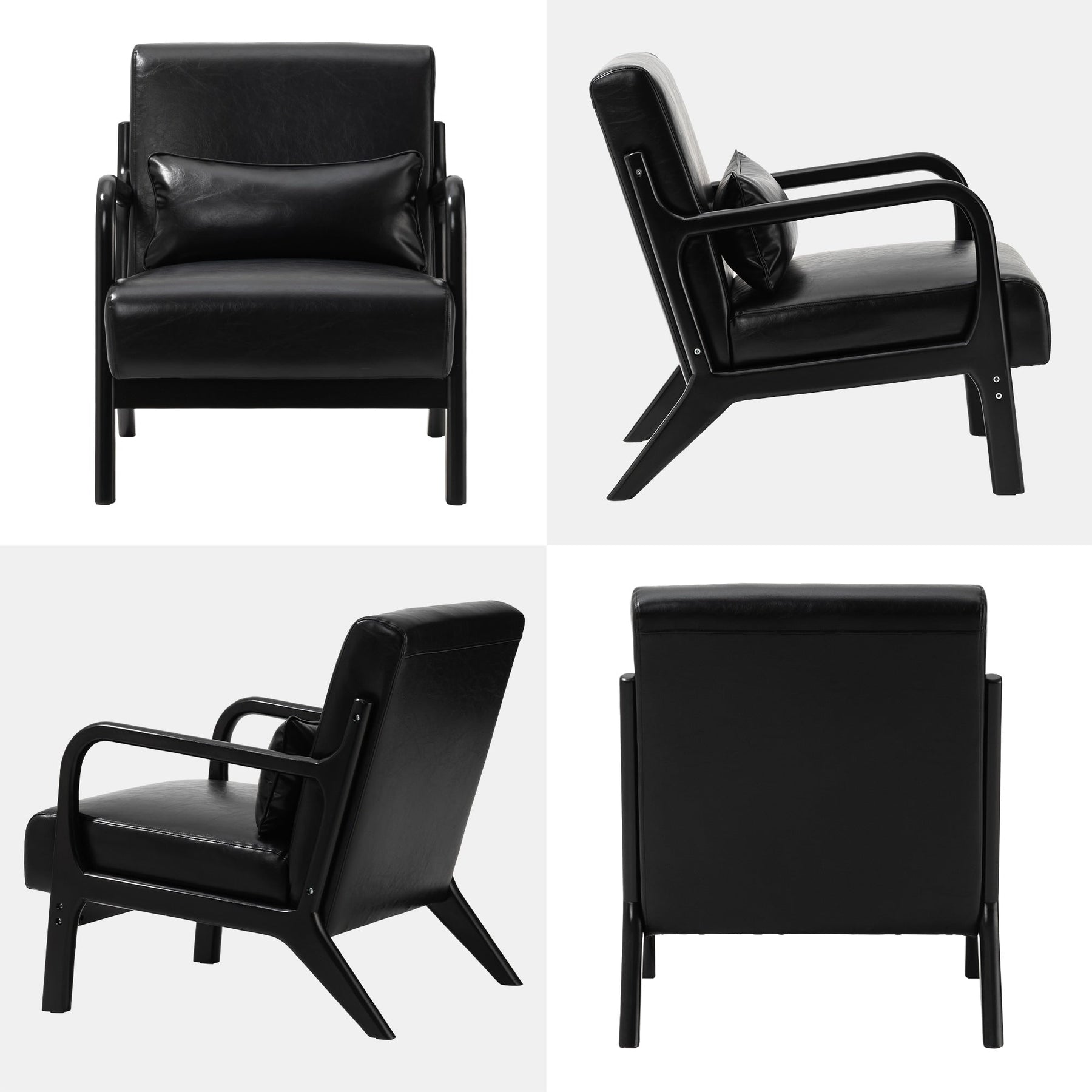 Glitzhome 30.75H Mid-Century Modern PU Leather Armchair Accent Chair with Pillow - 25.75W x 33.75D x 30.75H
