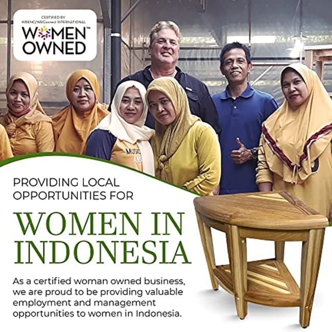 • Sustainable, Ethical Production: Crafted by a certified woman-owned company, this teak shower stool reflects the brand's commitment to quality and empowerment. Each piece is responsibly sourced and designed with care. Shower benches teak.