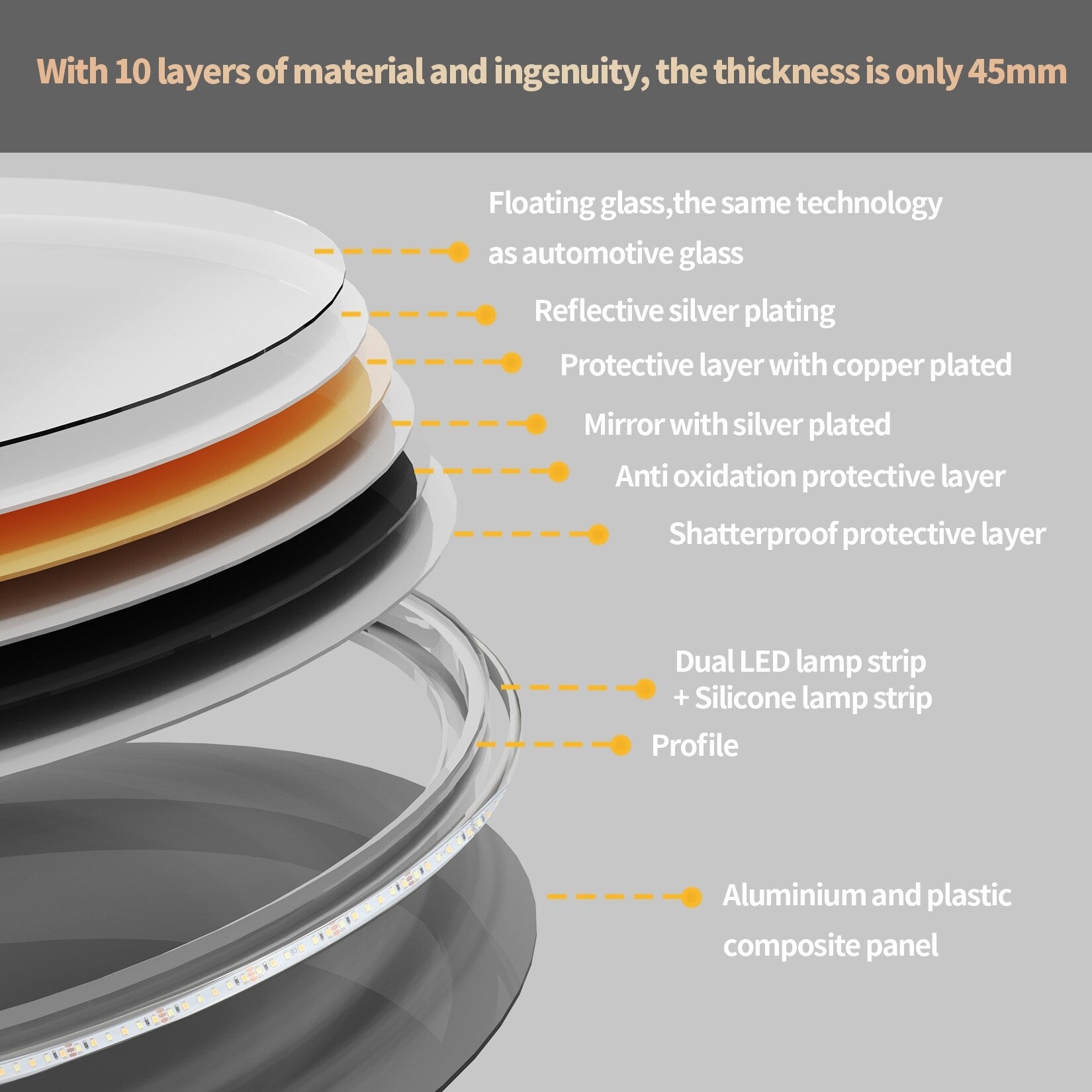 Material: 20% Aluminum Alloy frame + 80% HD Glass mirror
