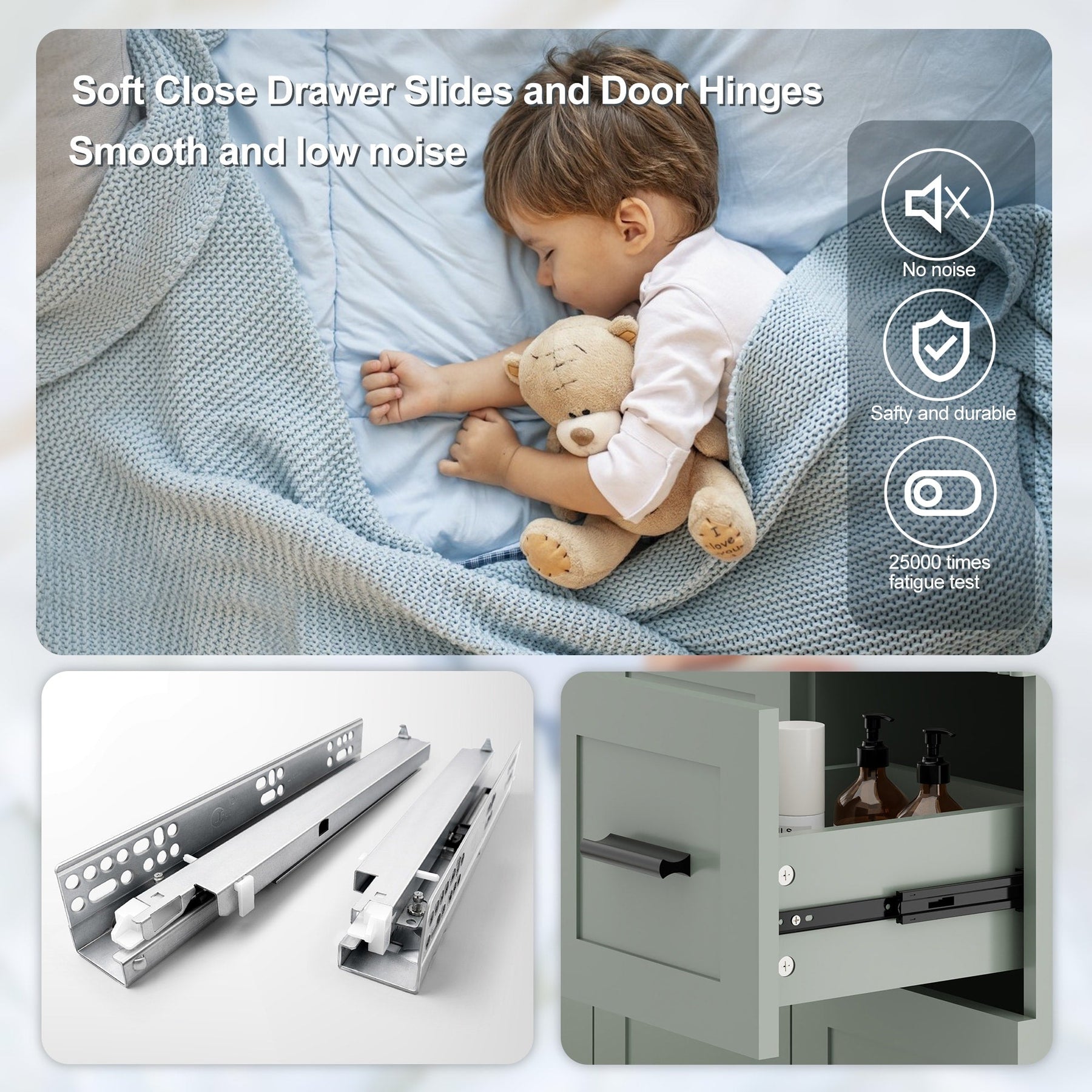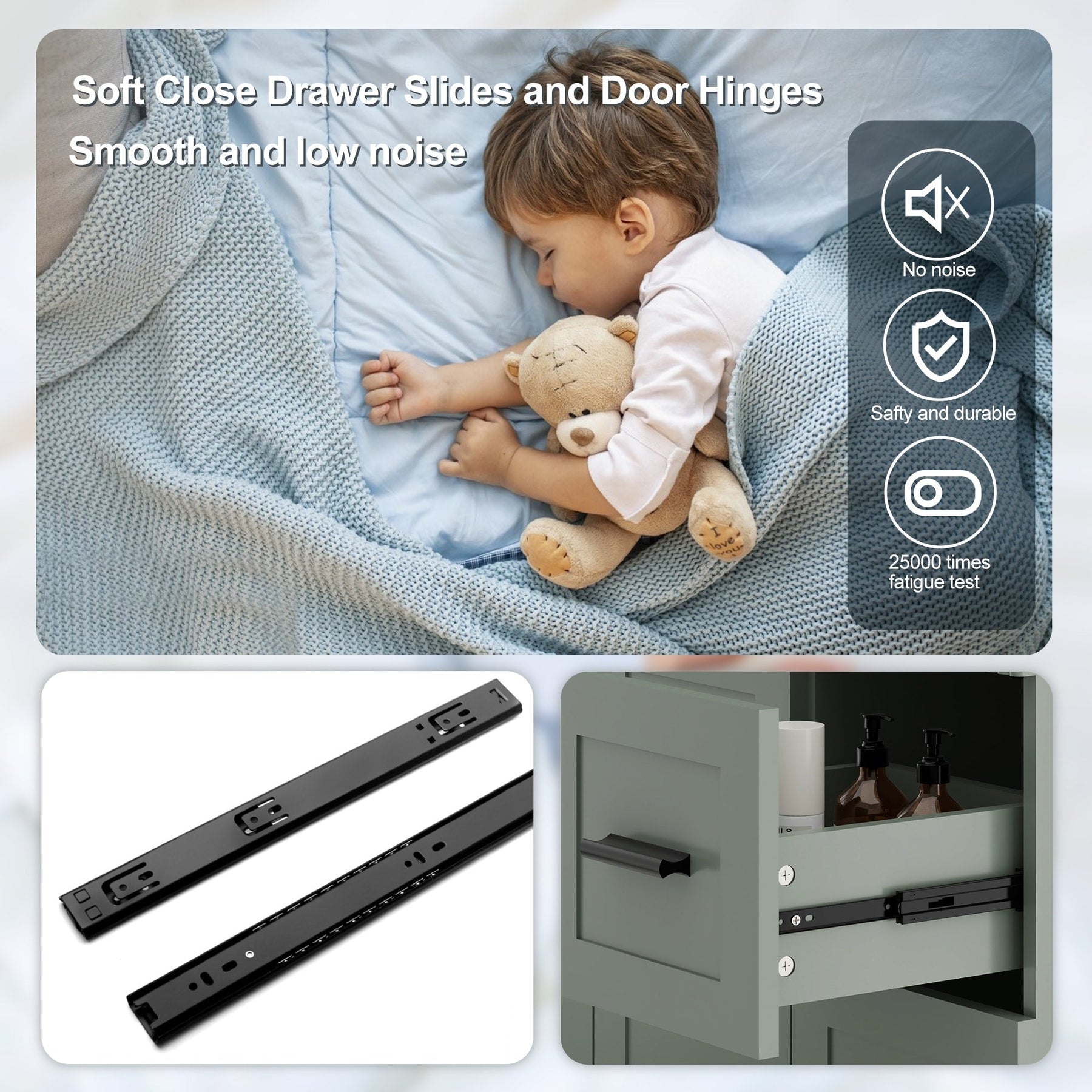 - Durable & Hygienic Build: 0.6' thick scratch-resistant drawer fronts(waterproof & easy-clean), anti-rust matte black zinc alloy handles.
