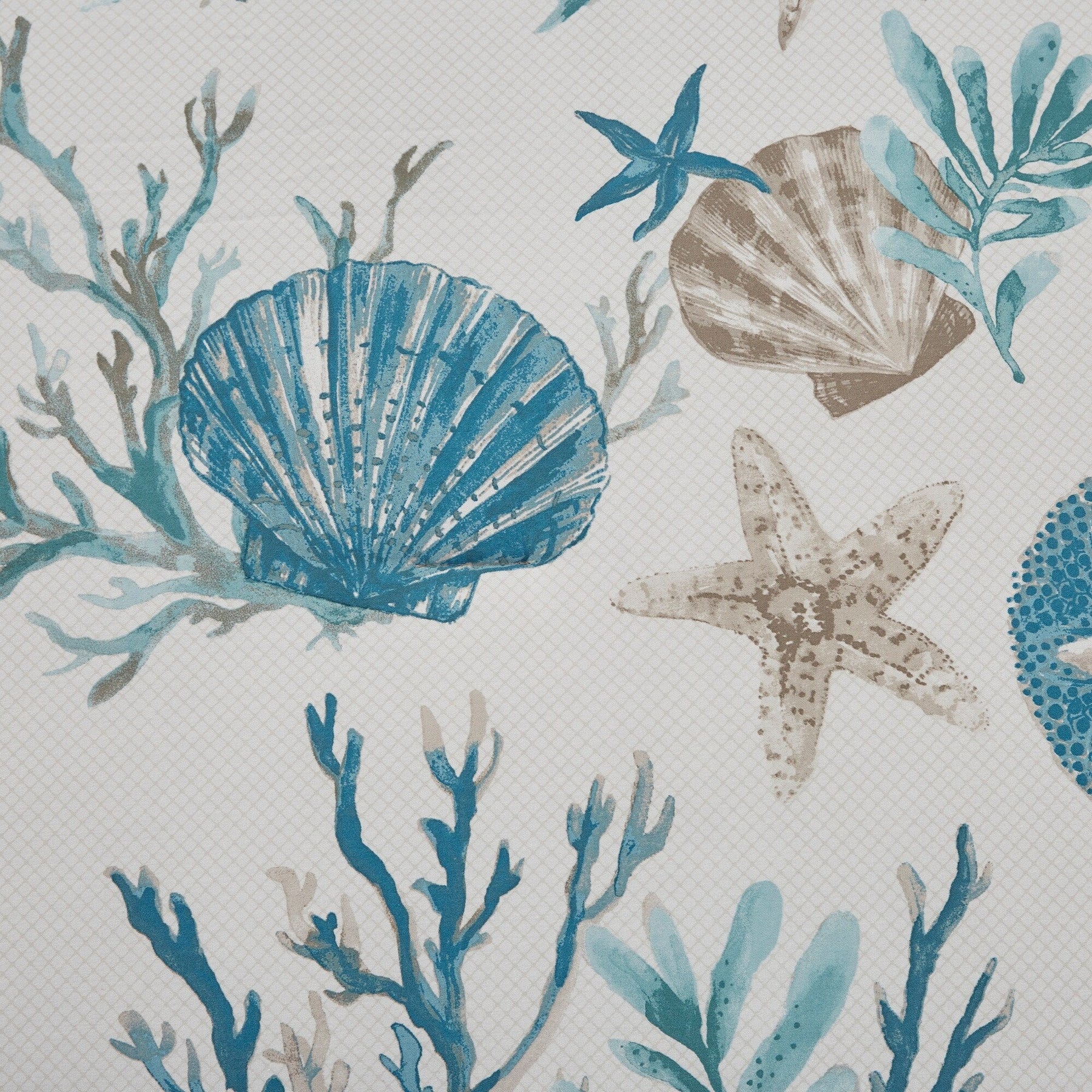 - All over printed shells, starfish and corals motif in vibrant colors