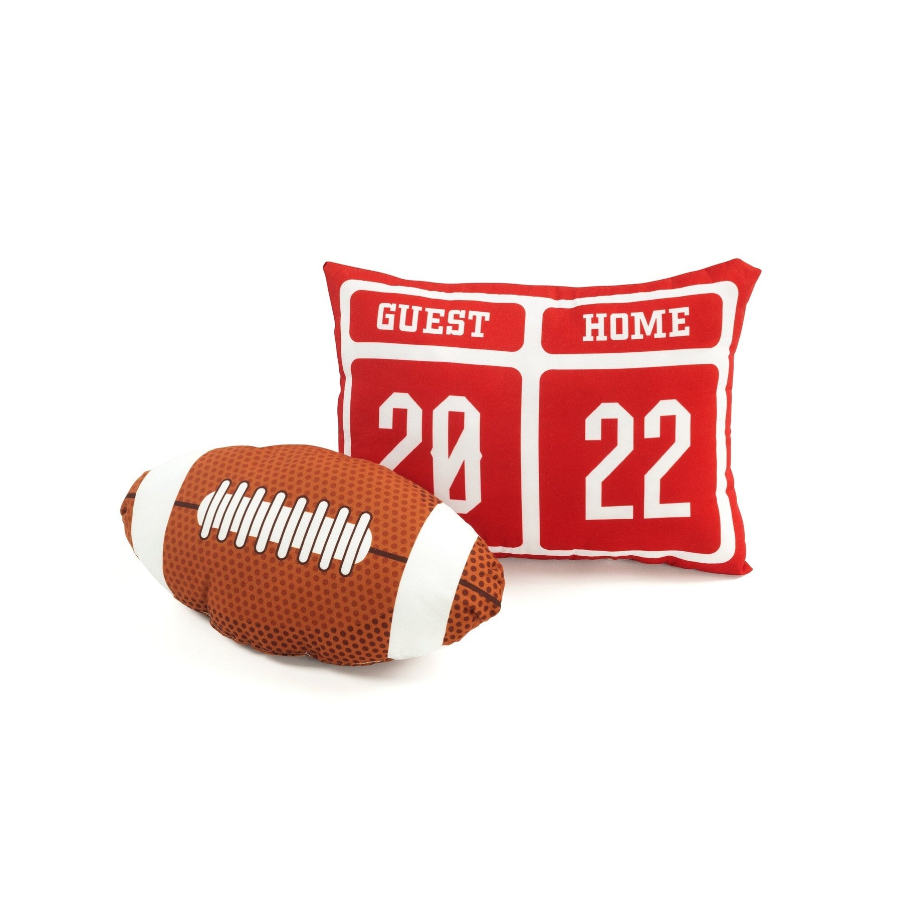 Touchdown! Give your child's bedroom an update with this fun and graphic football quilt set. This bedding set is perfect for those who play the game or simply love the game. With its striped reversible design and decorative pillows, there's no better way to show off your love for your favorite sport. This set comes with a quilt, one sham, and two decorative pillows. The 100% polyfill in this bedding set provides lightweight coverage for all season comfort. Please refer to label for full care instructions.