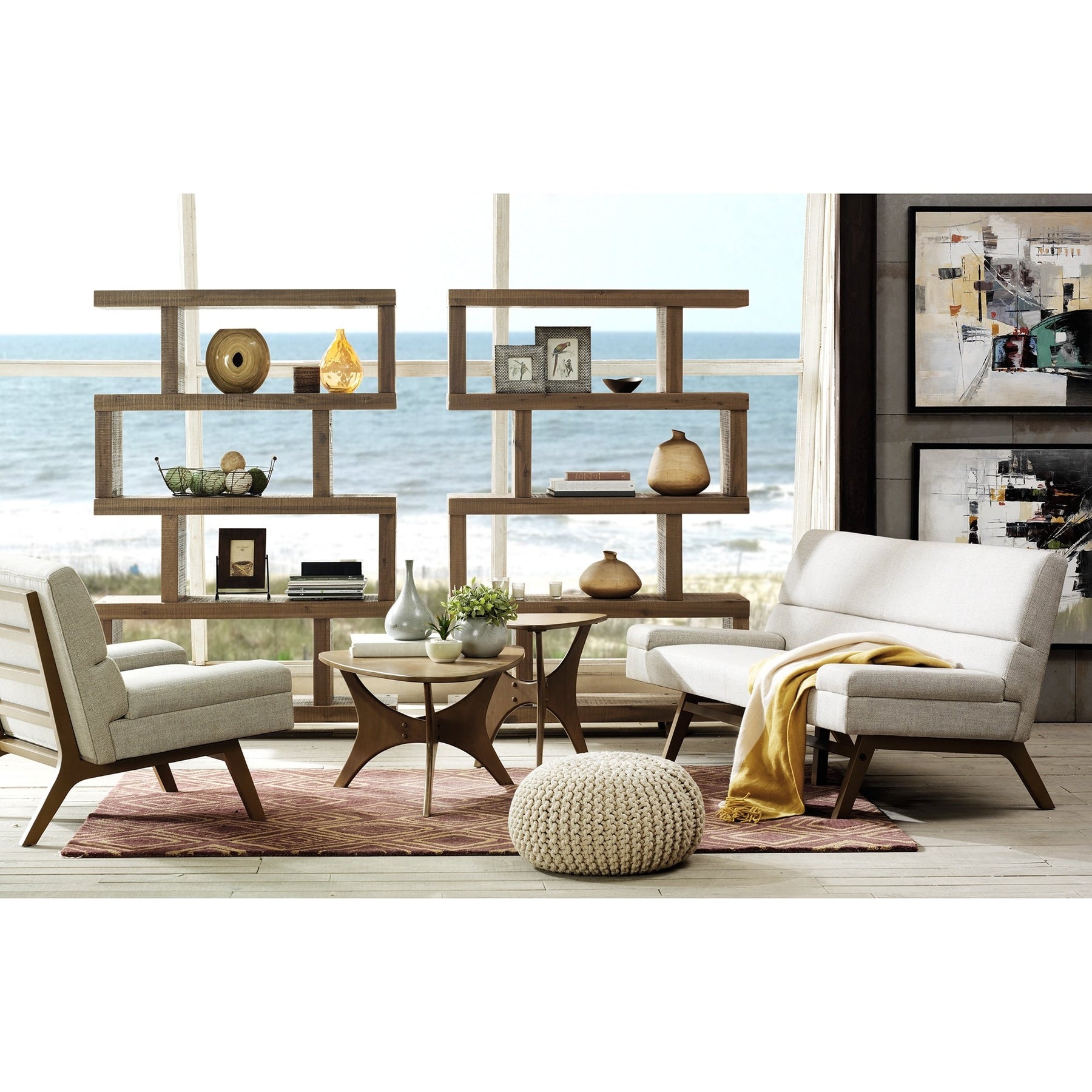 Add a touch of sophistication to your living room with the INK+IVY Blaze Triangle Wood Coffee table. Its mid-century modern design boasts a unique crossed geometric base and a triangular table top. Made from sturdy MDF and wood veneers, this piece is sure to be a lasting favorite, and its solid wood legs provide added stability. Assembly is a breeze with tools included. Choose from brown (pecan) or light brown (natural elm) finishes to match your decor.