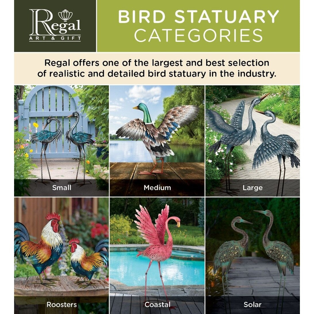 Commonly associated with Greek Mythology and also present in most ancient cultures, the legend of the Phoenix portrays this magnificent bird leaving paradise and entering the mortal world to be burned up by a great fire to be born again. It is a long and detailed wonderful story. This great bird symbolizes purification, transformation, rebirth, and a new life. Incredible metal detail. Metallic paint. Weather & fade resistant paints. Indoor/outdoor use.