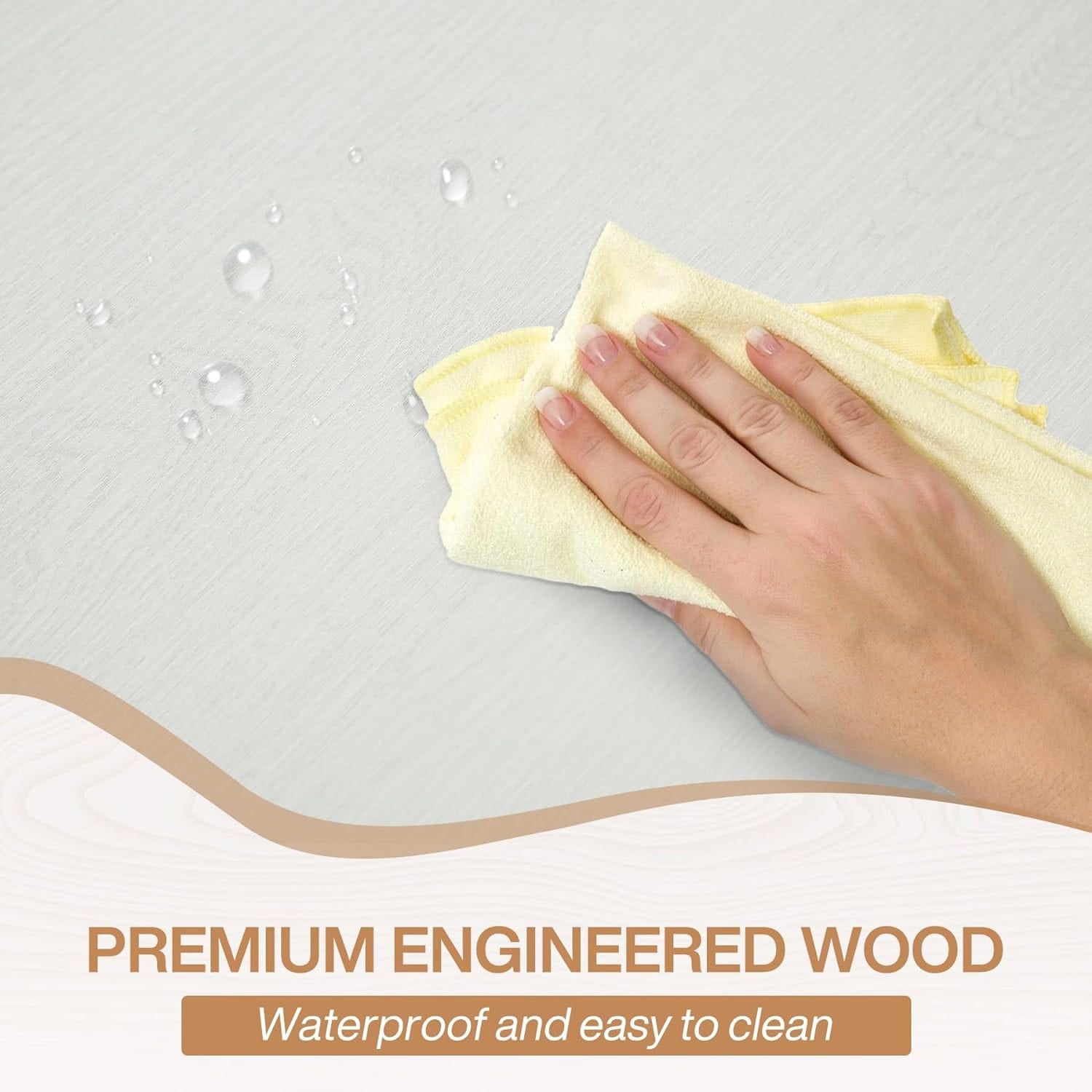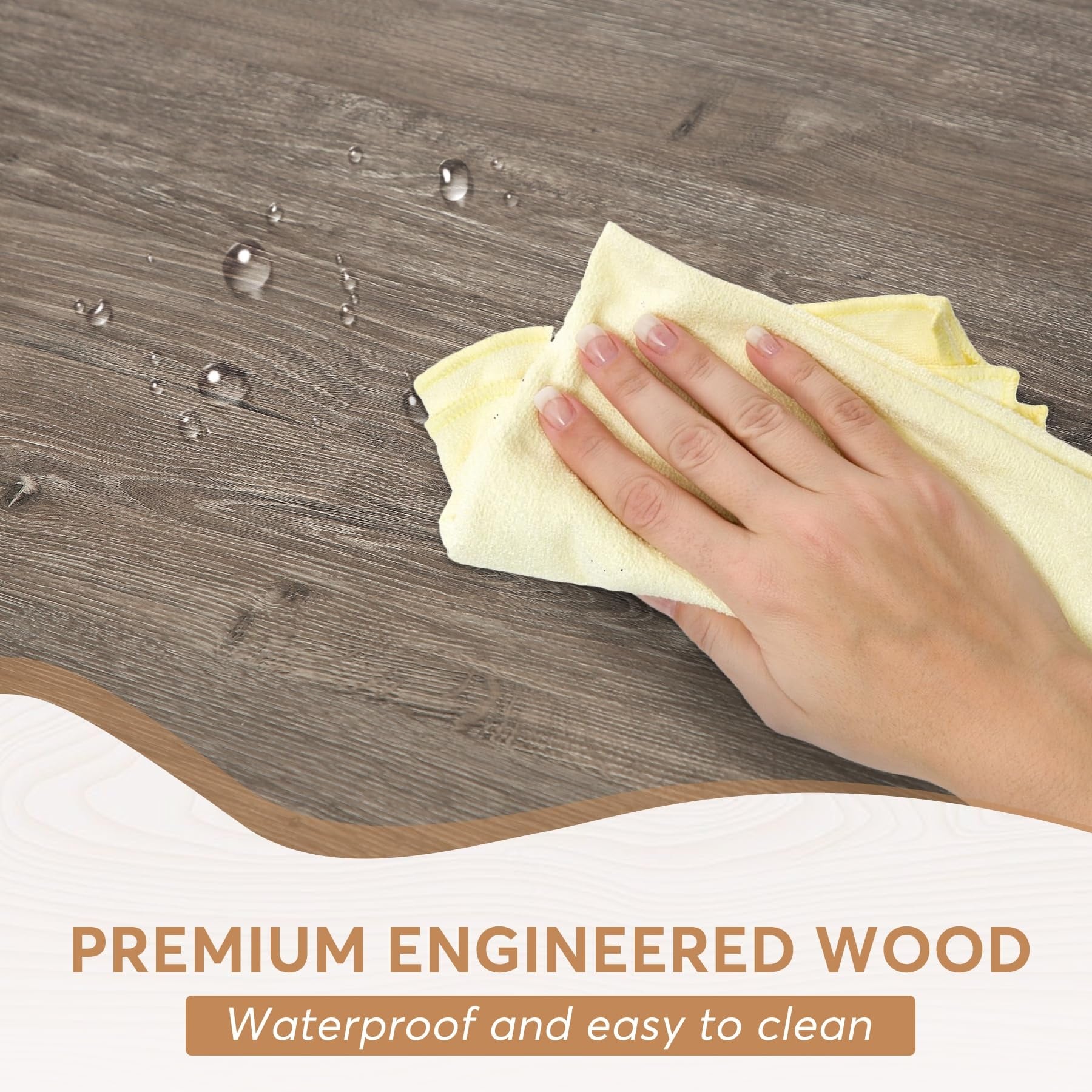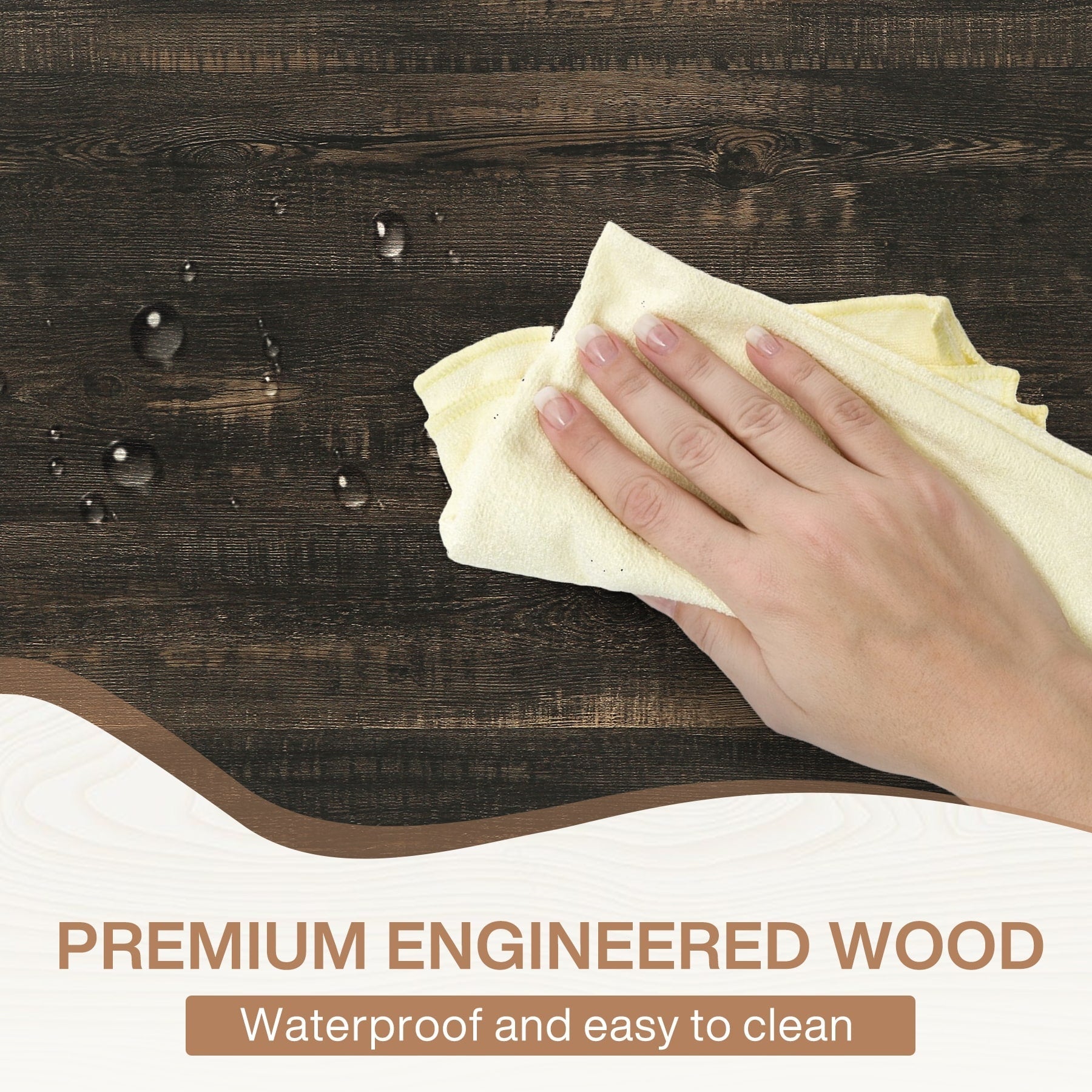 - Crafted from thick engineered wood and heavy-duty metal for reliable structure