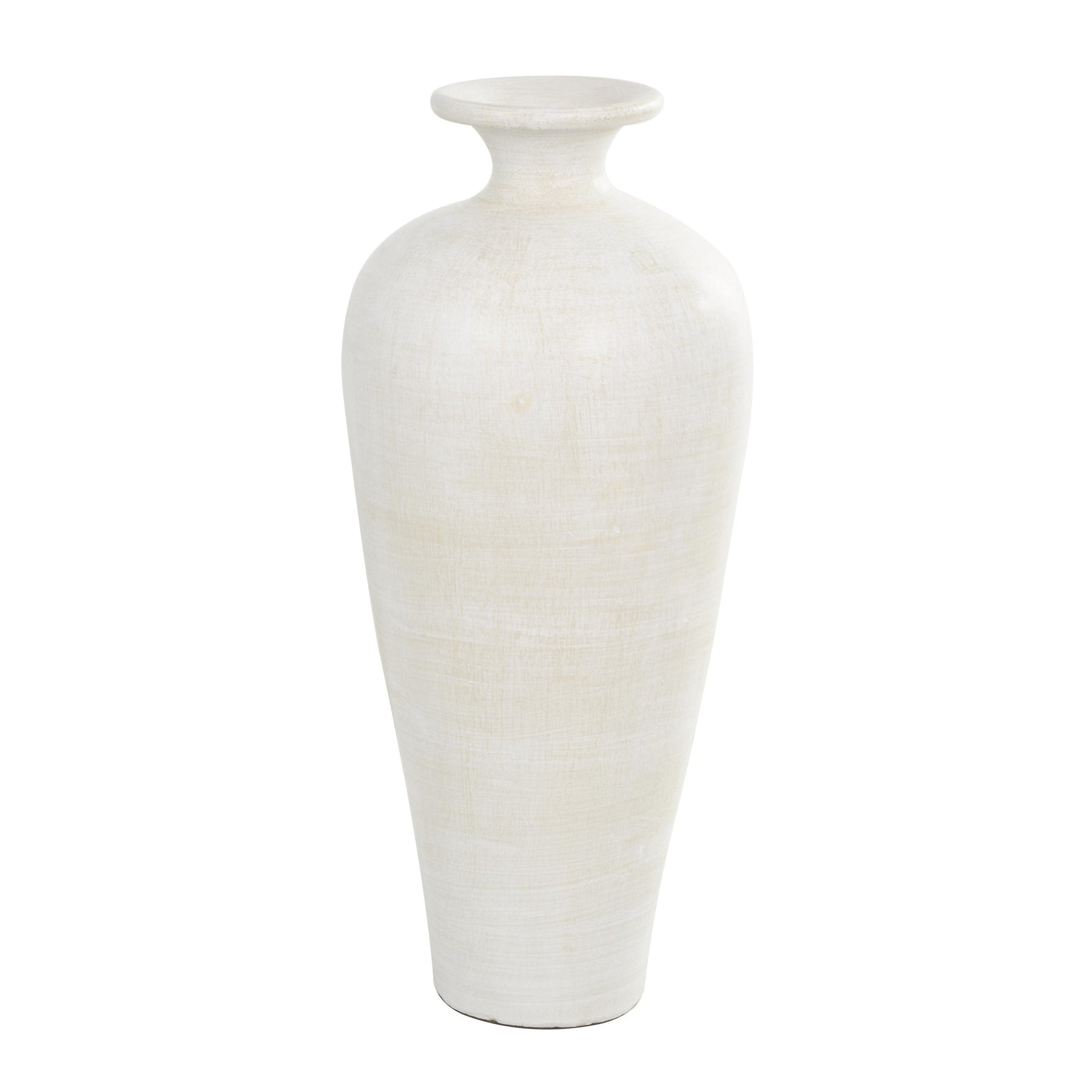 Ideal for showcasing tall branches and lush greenery or serving as a striking standalone piece, this elegant white centerpiece vase adds sophistication to your living room or bedroom decor. It features felt or rubber stoppers at the base to protect your furniture from scratches and prevent unwanted movement. Shipped in a single carton, this vase arrives fully assembled and ready for use. Exclusively designed for indoor settings, it is crafted with care in Indonesia. This modern-style vase comes in a sleek white finish, perfect for enhancing any contemporary space.