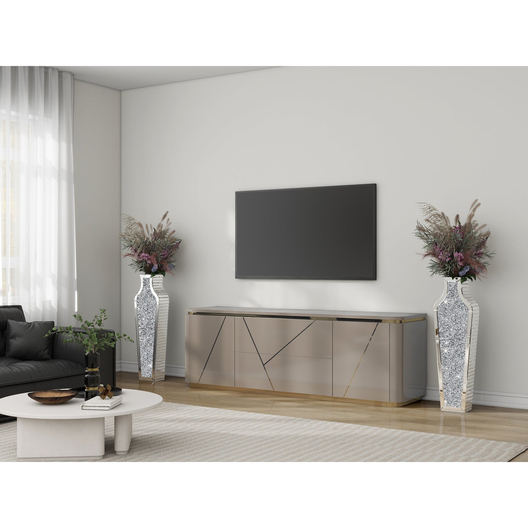 If you like to decorate your home, this floor vase will be your best choice, it can be well placed in any corner, especially at the entrance, next to the TV cabinet, in the middle of the sofa. Appreciate their design best against solid-colored backgrounds in elegant settings. They make great unique decor on mantle, console table or in any living space. Designed with mirror top and crushed diamond vase body. This floor vase decorative botanical and flowers to bring some bright and texture in your living space. Suitable for indoor use. Glam style. Vase has a 4.6 in mouth opening,26.8'/36'/43' silver mirror vase.