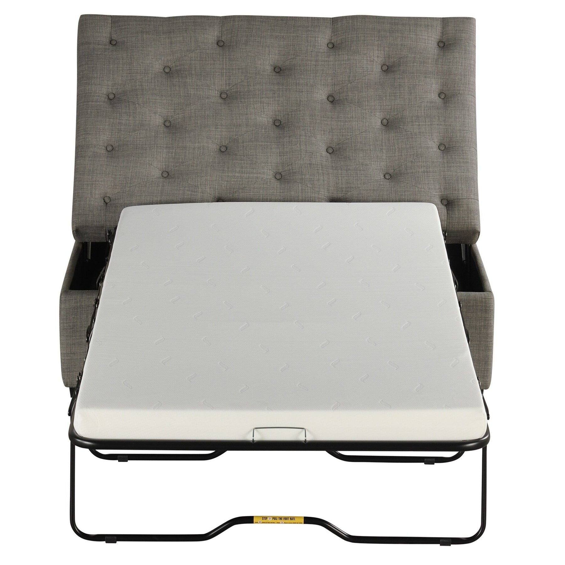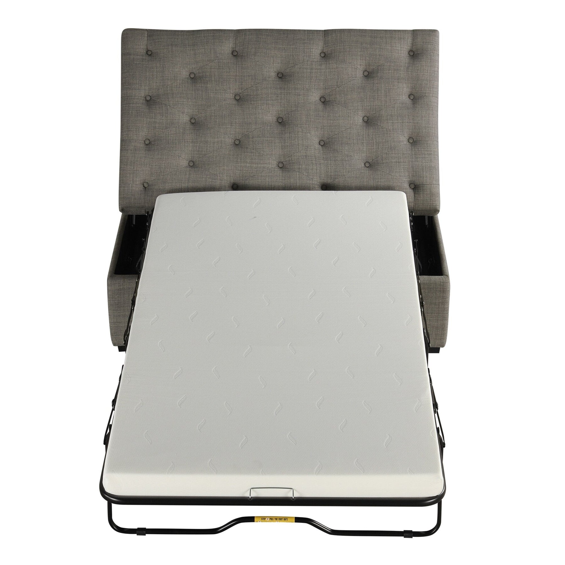 This versatile ottoman seamlessly combines style and function, making it an ideal solution for small spaces. It serves as both a chic piece of furniture and a comfortable twin-sized sleeper, perfect for apartments, studios, or any room where space is limited. The ottoman features an easy-to-use conversion mechanism, allowing it to transform into a bed with minimal effort, offering a practical option for last-minute guests. Its durable linen upholstery adds sophistication, while the tufted design enhances its elegance. When unfolded, the sturdy iron frame and mattress ensure a comfortable sleep, making it a reliable choice for both short and long stays.