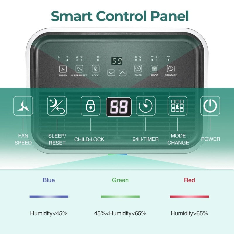 【3500 Sq. Ft MULTI DEHUMIDIFIERS】- Dehumidifiers are equipped with 3 MODES to choose from - AUTO, CONT and SLEEP modes. Our dehumidifiers have a very powerful dehumidifying capacity. At 65 degrees Fahrenheit and 60% humidity, we can remove 15 pints of moisture per day. At 86 degrees Fahrenheit with 80% humidity, it can remove up to 45 pints of moisture per day. It is an ideal dehumidifiers for basements, office, home, bathroom, bedroom, kitchen, stockroom, living room, laundry room, cellars, etc.