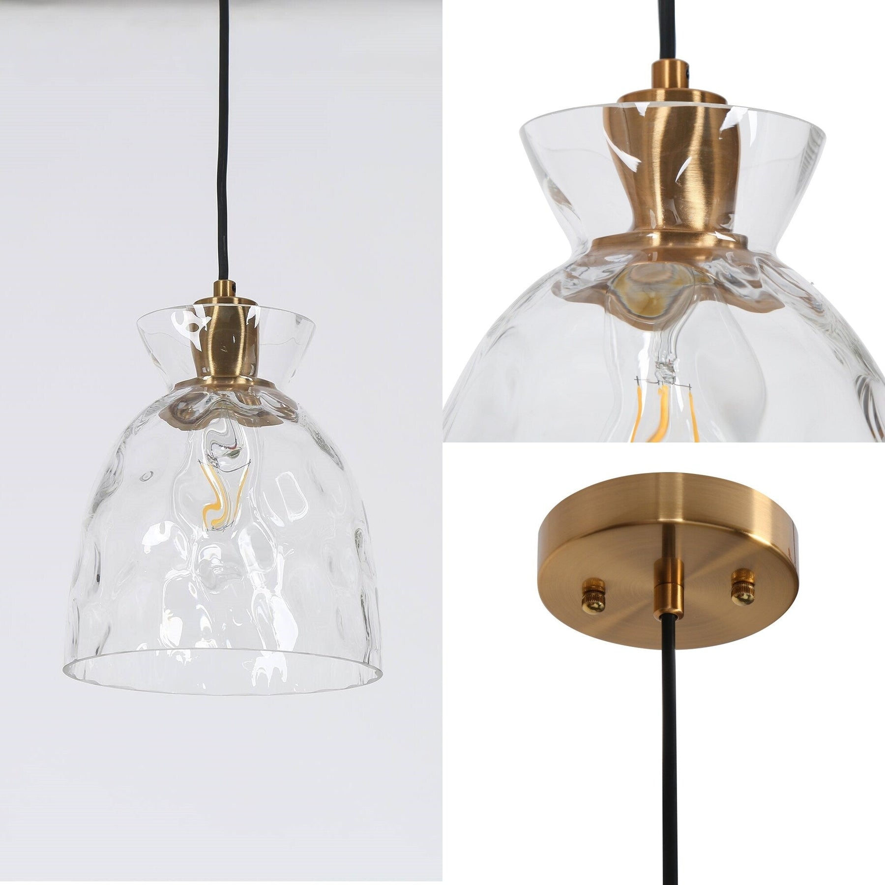 Infuse your space with warmth, texture, and timeless elegance. Hand-blown glass with a delicate ripple texture offers an artistic touch while softly diffusing light for a warm, ambient glow. The flared top of the shade mimics a blooming flower, enhancing the fixture's artistic appeal and making it a statement piece. The brass-toned socket brings a hint of vintage charm, adding warmth and sophistication to your space. Designed to captivate with its refined silhouette and luminous glow, this piece transforms kitchen islands, dining areas, and intimate spaces with effortless sophistication. Create a cohesive home with lighting from the same family - our Elisie Collection is available in pendant, chandelier and sconce styles. Note: Single pendant, not a set.