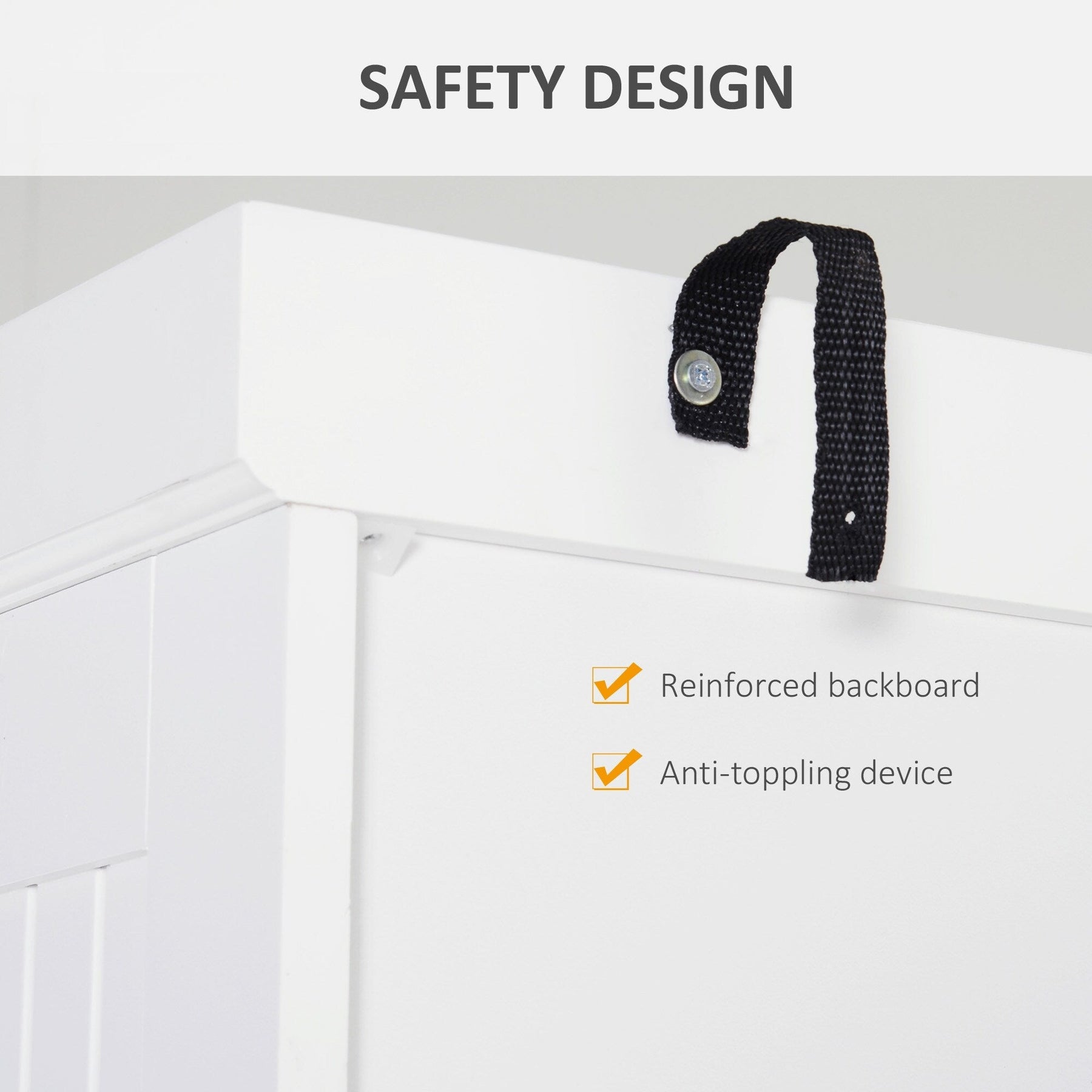 Maximize your kitchen storage with this HOMCOM Traditional Freestanding White Kitchen Pantry Cabinet. With a contemporary design that complements any decor, this cabinet offers ample storage options to keep your space neat and tidy. Made of durable MDF and particleboard, it features a white finish that adds a touch of elegance. The cabinet includes a microwave hutch, 5 cubbies, 3 drawers, and 2 cabinets with doors, providing plenty of space to store your kitchen essentials. The adjustable shelves, reinforced backboard and wall, and cable management holes make this cabinet both functional and stylish.