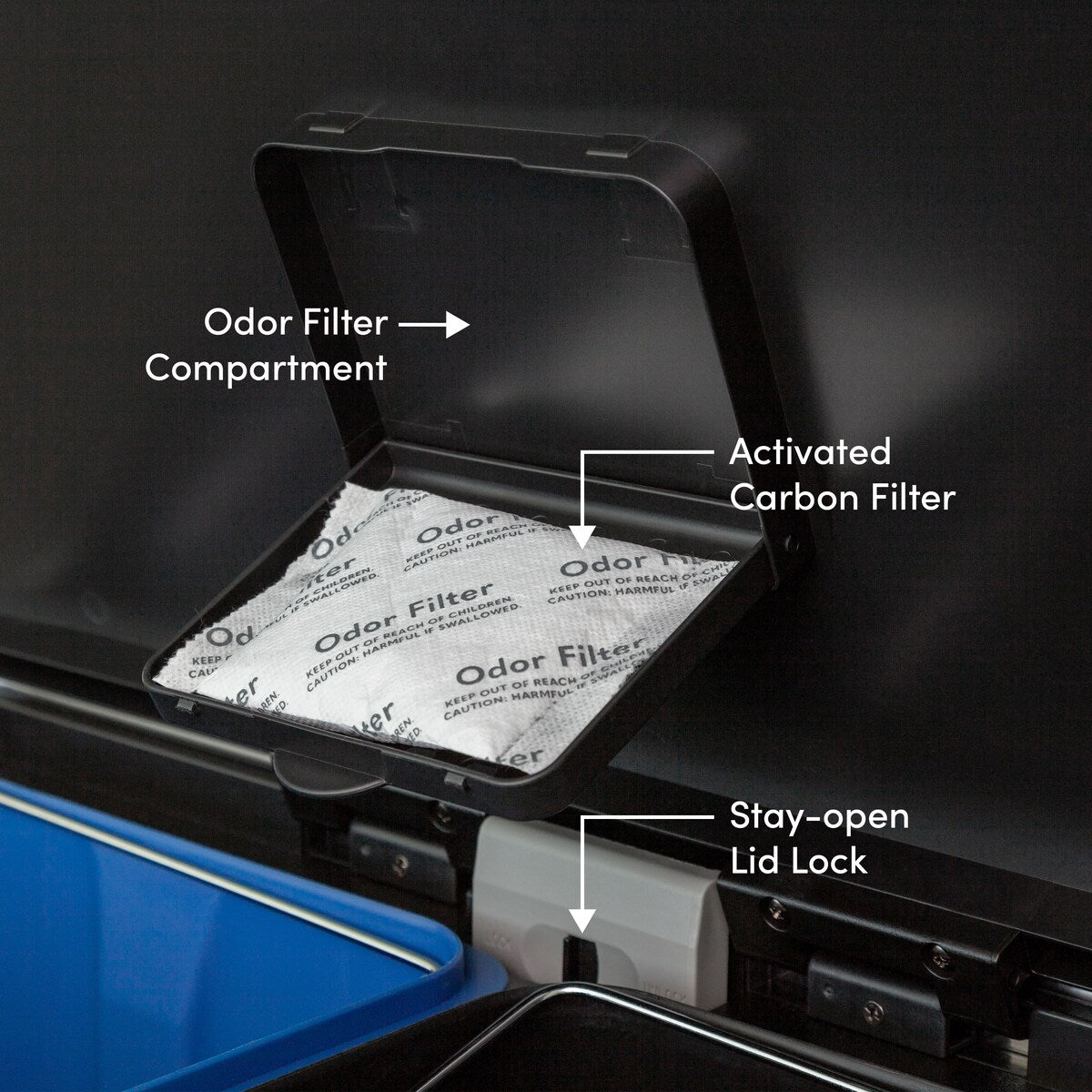Introducing the Qualiazero dual unit 16 Gallon Stainless Steel Trash Can, a sleek and sophisticated addition to your home that seamlessly combines style with functionality. Crafted from premium stainless steel, this trash can not only exudes a modern aesthetic but also offers a range of features designed to elevate your waste disposal experience.The soft-close lid mechanism ensures a quiet and gentle closure, putting an end to noisy lid slamming and extending the lifespan of your trash can. The non-skid base provides stability, preventing accidental tipping and ensuring the trash can stays securely in place, even in high-traffic areas. Say goodbye to unsightly fingerprints on your stainless steel surfaces; our trash can features a fingerprint-resistant coating, maintaining a pristine appearance with minimal effort.This dual unit trash can comes equipped with two 8-gallon compartments, allowing for convenient separation of recyclables and general waste. The thoughtful inclusion of a free carbon odor filter adds an extra layer of freshness to your space, effectively neutralizing unpleasant odors. The user-friendly foot pedals provide a hands-free operation, promoting a hygienic and sanitary waste disposal experience.Designed for easy maintenance, the removable inner buckets simplify cleaning and trash disposal, ensuring a hassle-free experience. The contemporary design seamlessly integrates into various interior styles, making it a versatile addition to any room.