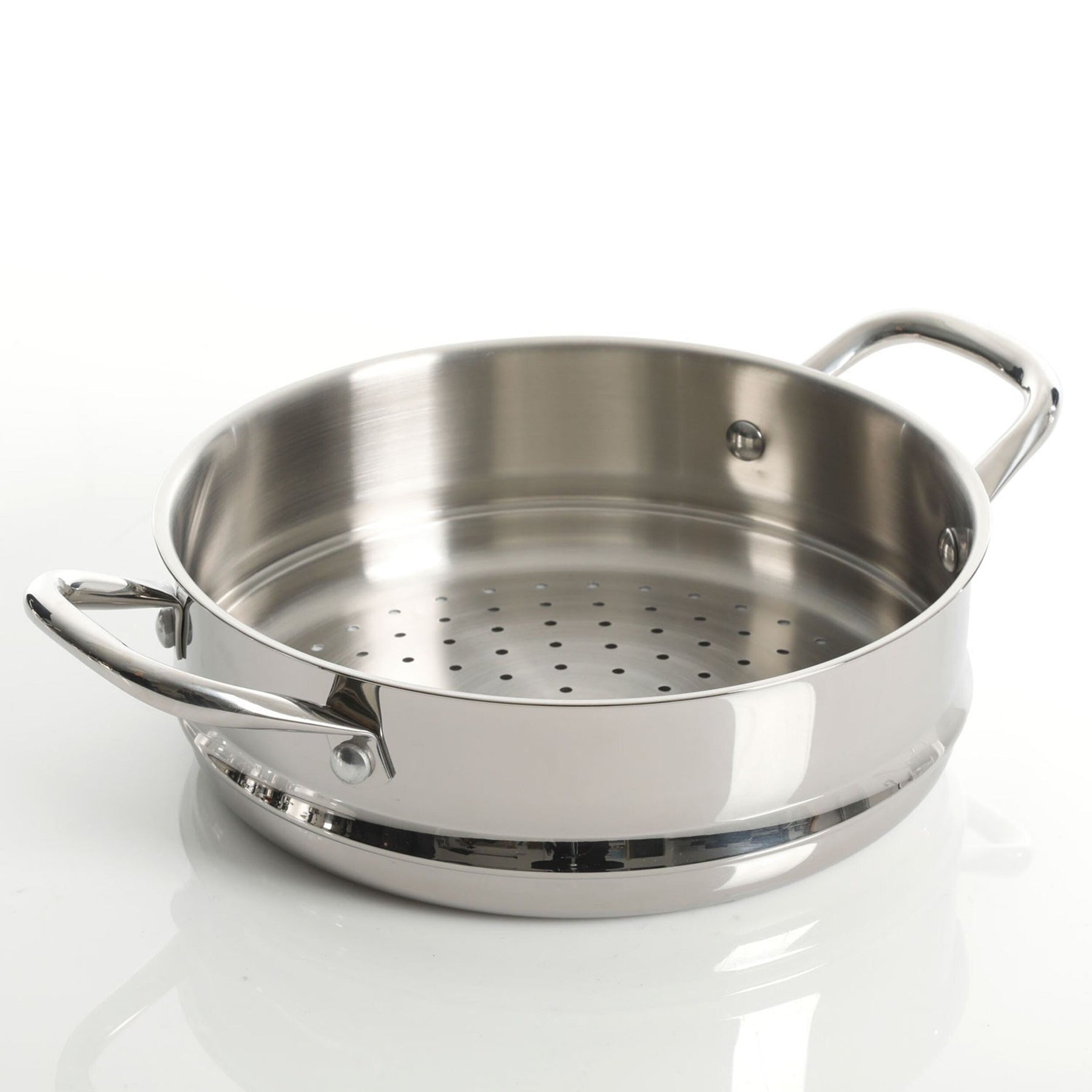 Cook and create your wildest dishes with the 10 Piece Heavy Gauge Stainless Steel Cookware Set. Providing all the basic necessities, this cookware set allows chefs of all skill levels to fry, saute, sear, steam, boil and bake. The heavy gauge stainless steel bodies are compatible to any home stove top burner. The dutch oven and pans include heat resistant glass lids with steam vents for easy monitoring as the food cooks! Steam veggies, stir fry noodles, fry chicken, stir savory tomato sauces and more.Set: Cookware SetMaterial: Heavy Gauge Stainless SteelFinish: PolishedHandles: Stainless SteelCompatible with All Cook TopsHand Wash OnlySet Includes:One 1qt Saucepan with 6.25in Handle and LidOne 2.5qt Saucepan with 7in Handle and LidOne 9.5in Frying Pan with 7.25in HandleOne Steamer Insert with 2in HandlesOne 4.4qt Saute Pan with 8.5in and 2in Handles and LidOne 5qt Dutch Oven with 2in Handles and LidPer Item Measurements:1qt Saucepan: 12.25in length, 6in width, 3in height, 1qt capacity, 1lb weight2.5qt Saucepan: 14.25in length, 7.75in width, 4in height, 2.5qt capacity, 1.75lbs weight9.5in Frying Pan: 17in length, 10in width, 2.25in height, 48oz capacity, 2lbs weightSteamer Insert: 14in length, 10in width, 3in height, 1lb weight4.4qt Saute Pan: 22in length, 11.5in width, 3in height, 4.4qt capacity, 3.55lbs weight5qt Dutch Oven: 13.75in length, 10in width, 4.5in height, 5qt capacity, 2.8lbs weight