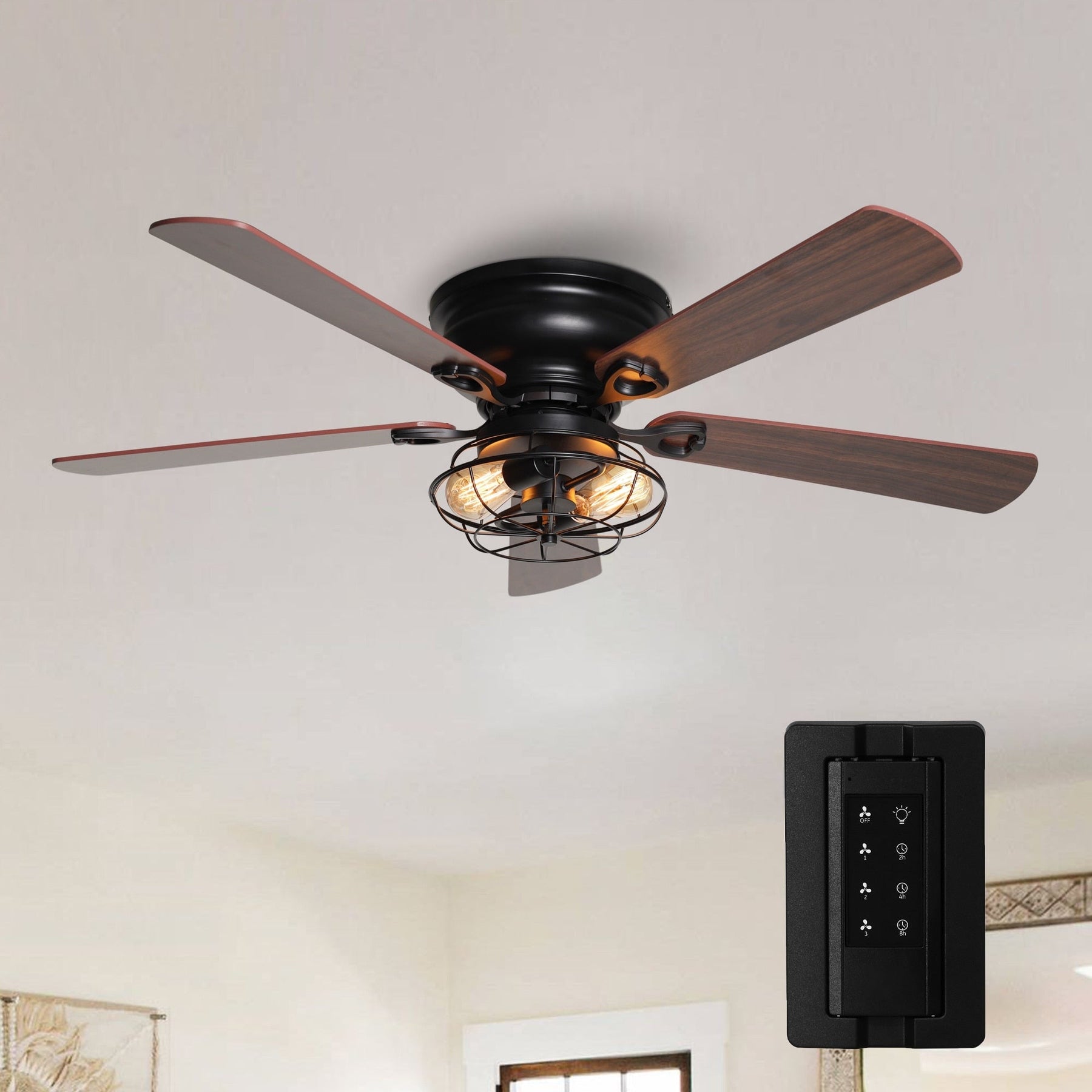 Upgrade your interior decor with this stunning farmhouse 48-inch low profile flush mount ceiling fan. Crafted from premium metal and plywood, this fan is both sturdy and durable. The transitional style design allows it to blend seamlessly with any room setting. With three fan speeds and reversible blades, you can stay comfortable year-round by switching between cool and warm airflow. Plus, the included handheld remote makes this low profile ceiling fan easy to adjust the fan speed and light settings.
