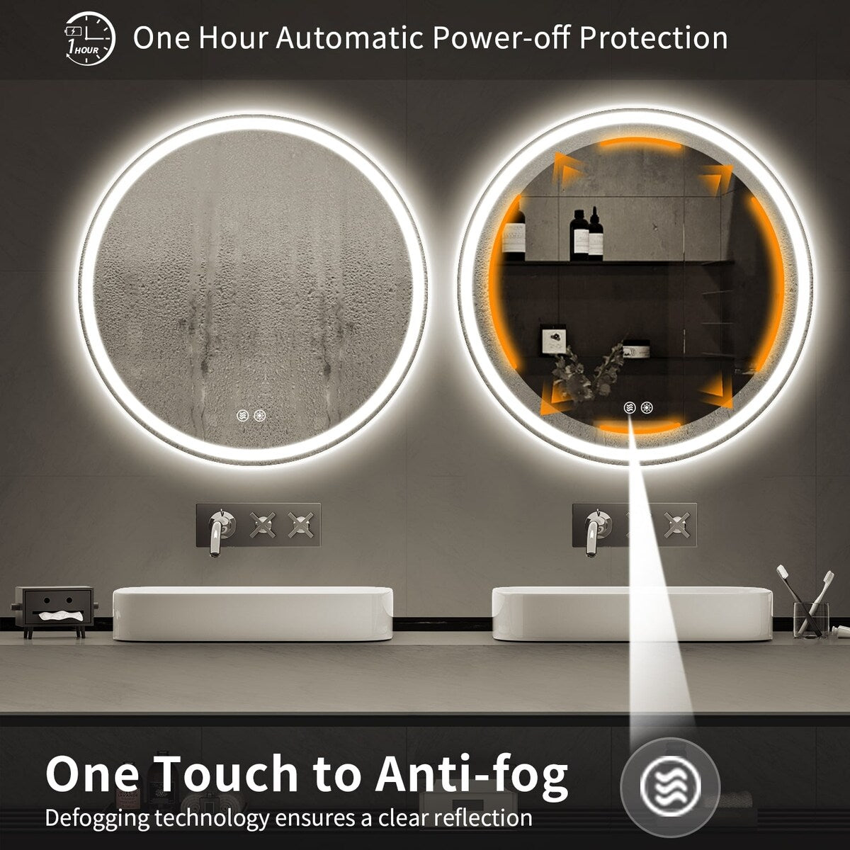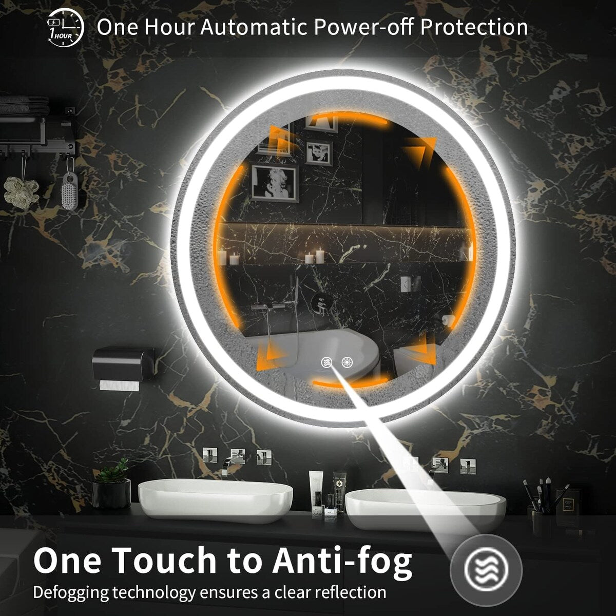• Long Lifespan- Made with tempered glass and 50,000 hours of LED (will last for 45 years), the circle-led mirror will be with you longer.