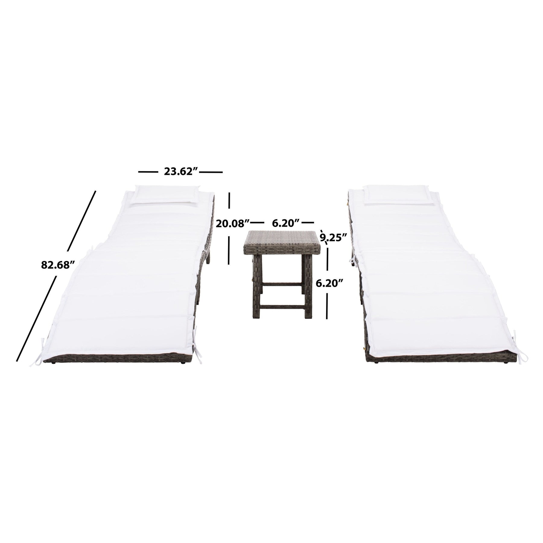 Luxuriate in the summer sun with this 3 Piece Sunlounger Set. The softly flowing elongated silhouettes of Carew's two PE rattan seats are perfectly topped with plush white cushions for maximum relaxation, and a matching end table is ideal for colorful drinks or fresh fruits.