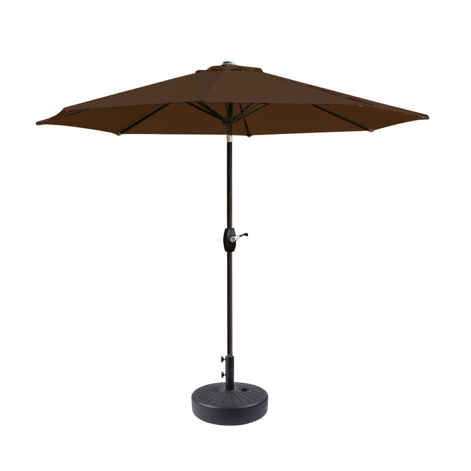 Add some shade to your home with this essential umbrella and fillable base weight set!. Designed with style and durability in mind, this piece is built with an 8 rib steel frame. The polyester fabric blocks up to 95% of UV rays to keep yourself while being fade and water resistant.  A push-button tilt mechanism lets you adjust as you please, so you can get just the right amount of sun!  The best part is, both are easy to setup and to clean!