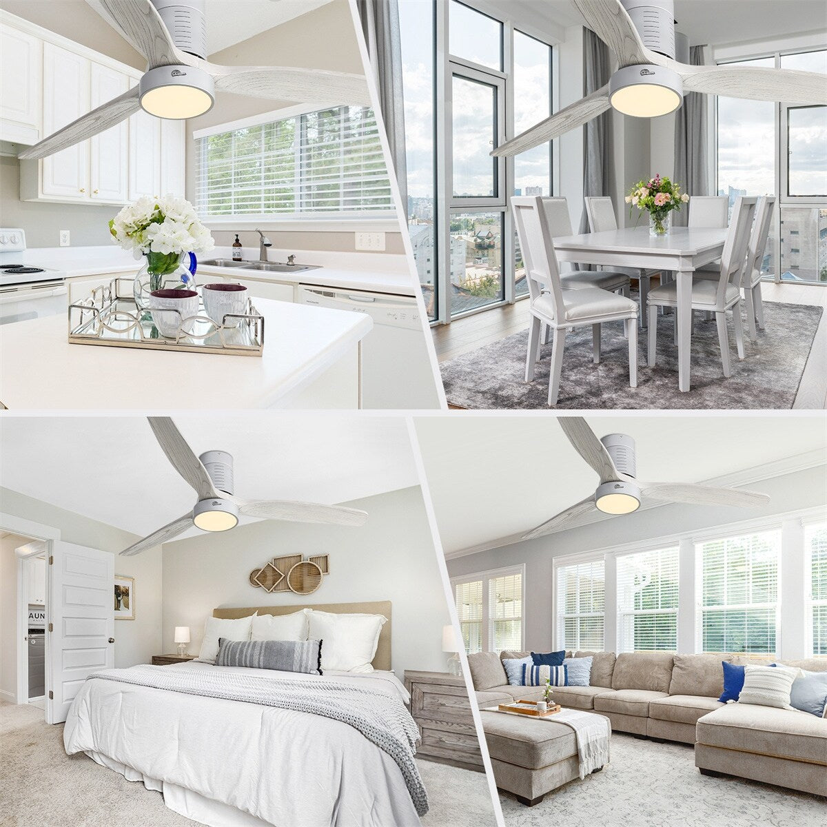 Add an instant upgrade to your home's look and improve air circulation by installing a ceiling fan. This 52 in. low profile wood ceiling fan with light which design with solid wood would be perfect for decorating your farmhouse and vintage home. It has 3-solid wood fan blades and integrated in a farmhouse design. Minimalist retro style with propeller shape can be an eye-catching ceiling fan. It's suit your living room, bedroom, outdoor covered terrace for dry locations. Let this ceiling fan be the highlight of your outdoor patio.