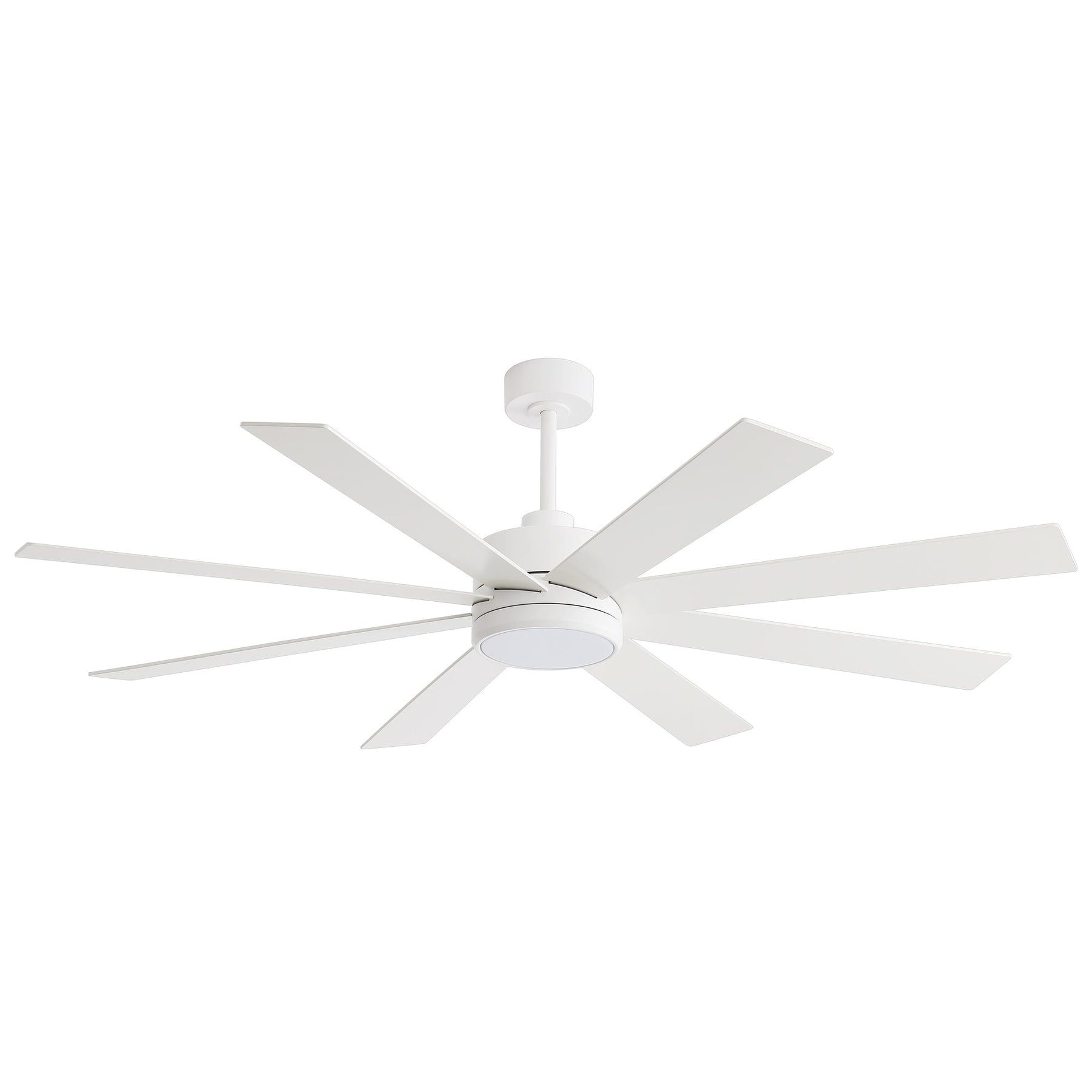 A modern design that performs well in indoor environments,  generates a substantial amount of airflow. It is a very big fan with 8  blades and 65 in. blade span. This dry rated and ceiling fan housing is  constructed with the durable Plywood blade and metal material. 8  handsome blades are available in white finish featuring reversible and  removable. It features a powerful DC motor that runs smoothly and  quietly while operating 70% more efficiently than AC motors. The  convenient, 6-speed set-up can be controlled locally using the included  remote control.