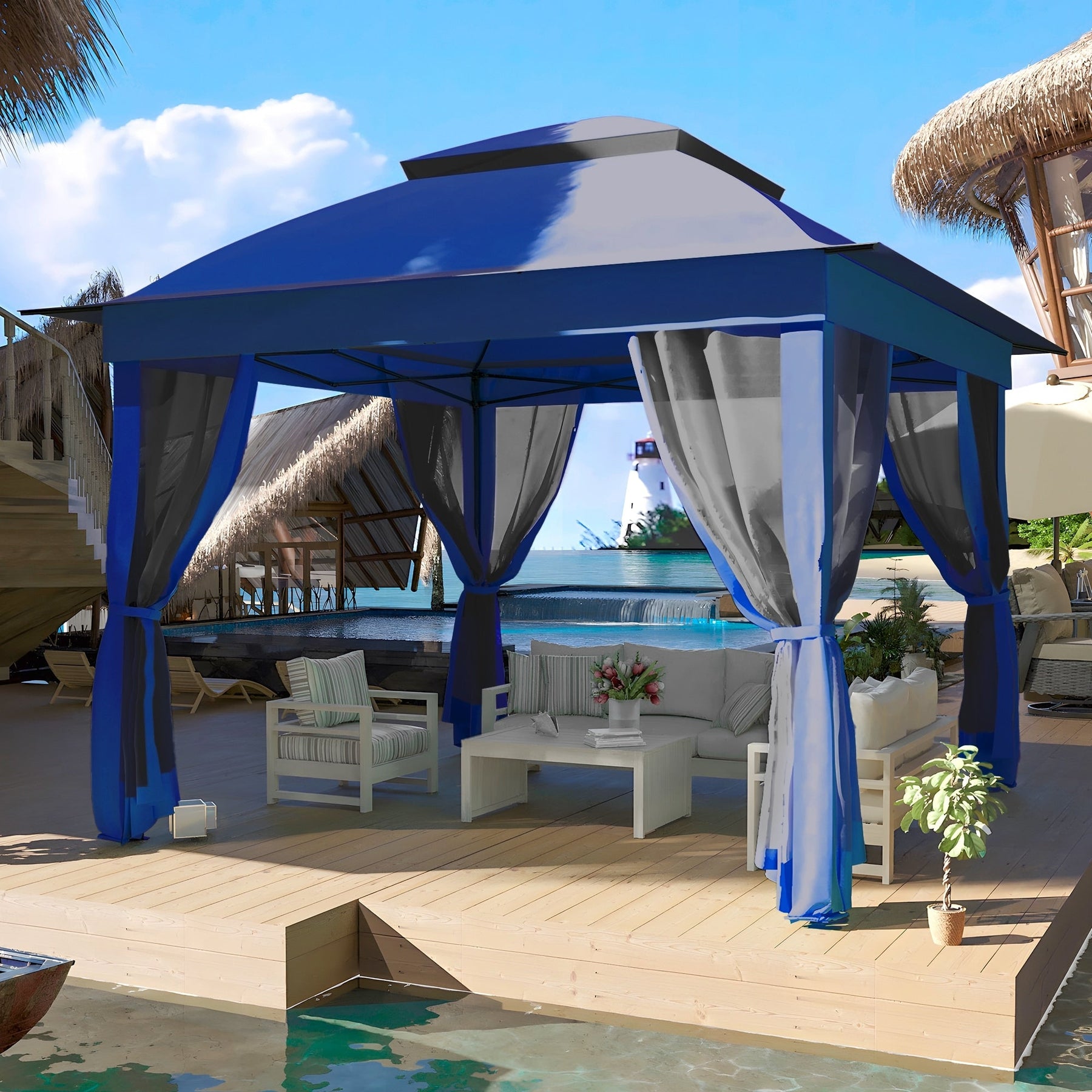 Cozywor pop up gazebo features an elegant design with double roof well ventailed to provide a cool environment. This gazebo is equipped with mosquito netting that can be closed to prevent mosquitoes and provide more private space. Instantly create an outdoor gathering spot for family and friends away from the glaring sun and pesky insects. The gazebo is made from Oxford fabric. A carrying case is included for easy transport. With straight-forward, easy-to-follow assembly instructions you'll be relaxing in your favorite new outdoor living space in no time.