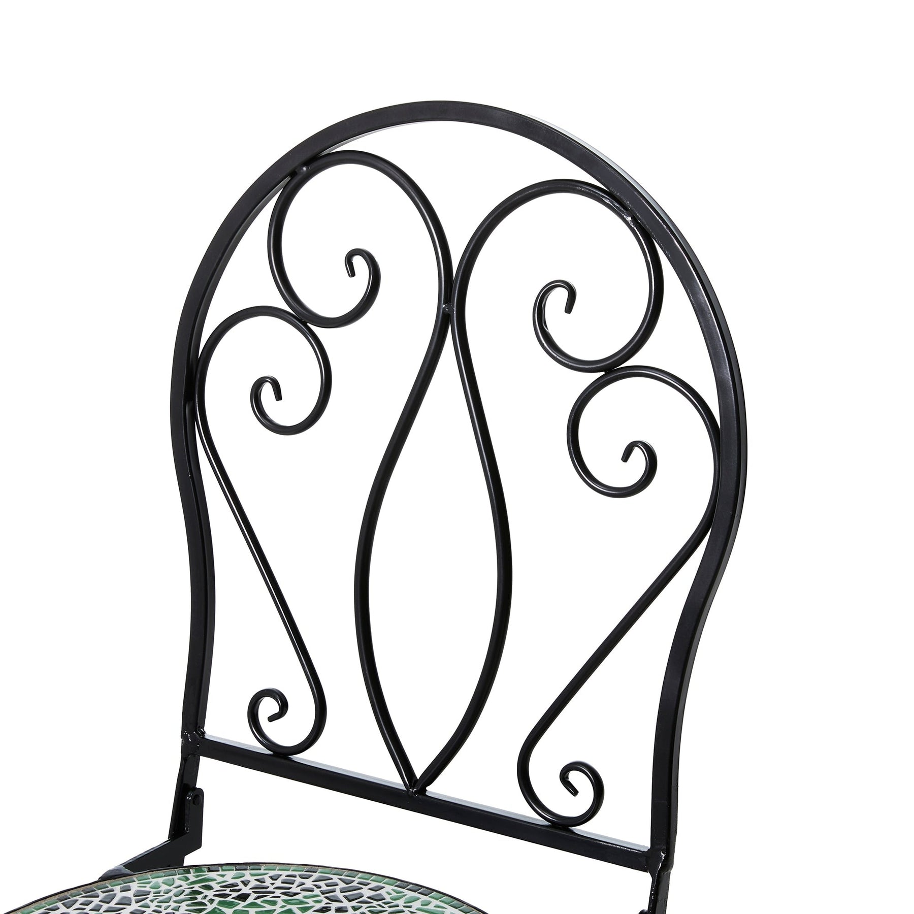 - Featuring a sturdy iron frame adorned with an exquisite tile tabletop, both elegant and unique.