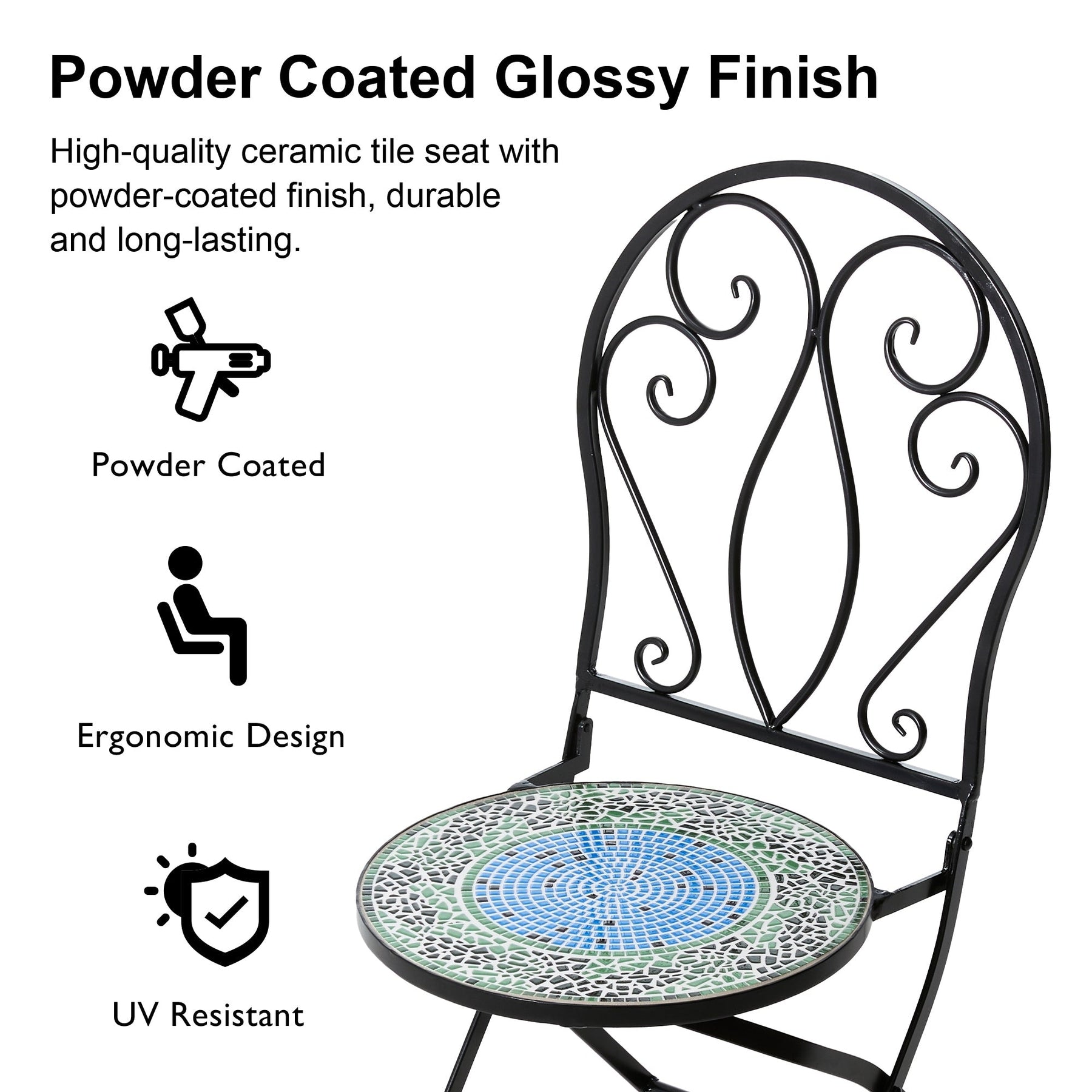 - High-quality ceramic tile tabletop with powder-coated finish, durable and long-lasting.