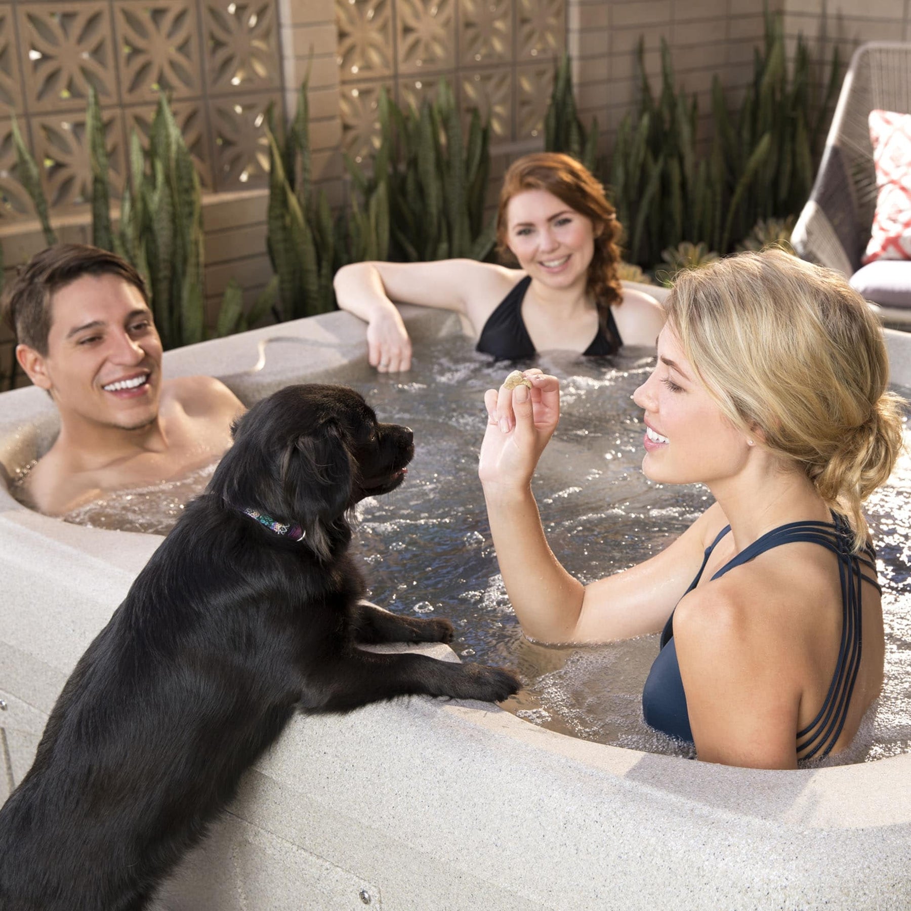 The LS100 by Lifesmart Spas is a 110v Plug and Play, 13-jet hot tub with multi-color underwater LED light and capacity for 4 adults. The four bucket seats each have their own perfectly-placed jets for maximum relaxation. With a powerful 1.0 HP pump, air control valve, and intuitive digital control panel, the jets can be adjusted for maximum relaxation.