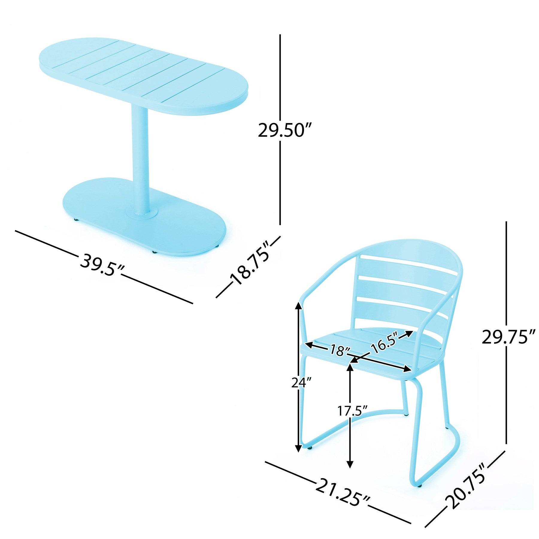 - Table Dimensions: 18.75 inches deep x 39.50 inches wide x 29.50 inches high
