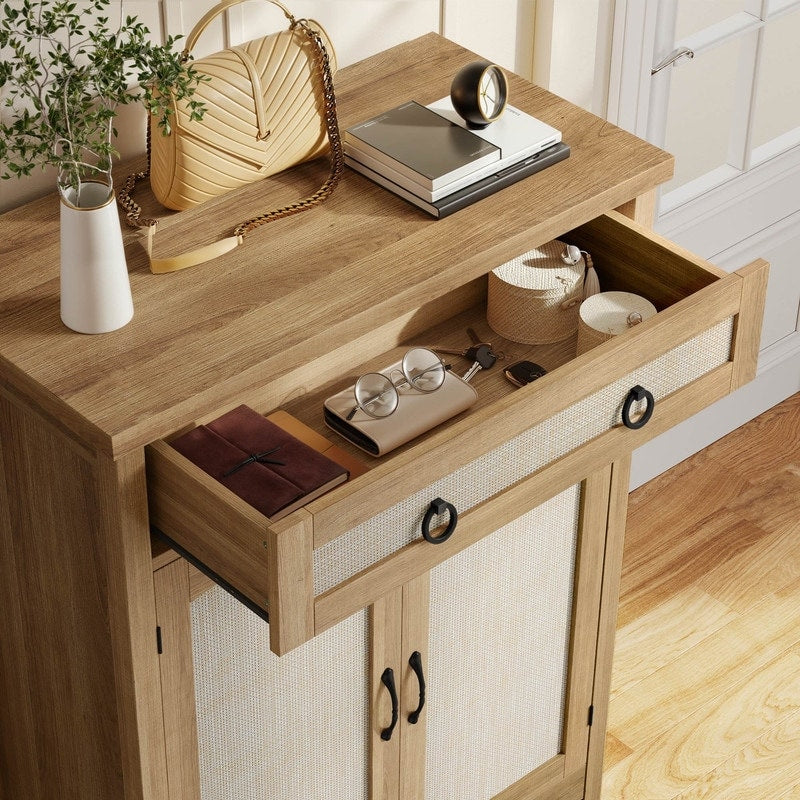 - Large storage space accommodates 15-20 pairs of shoes and small items.