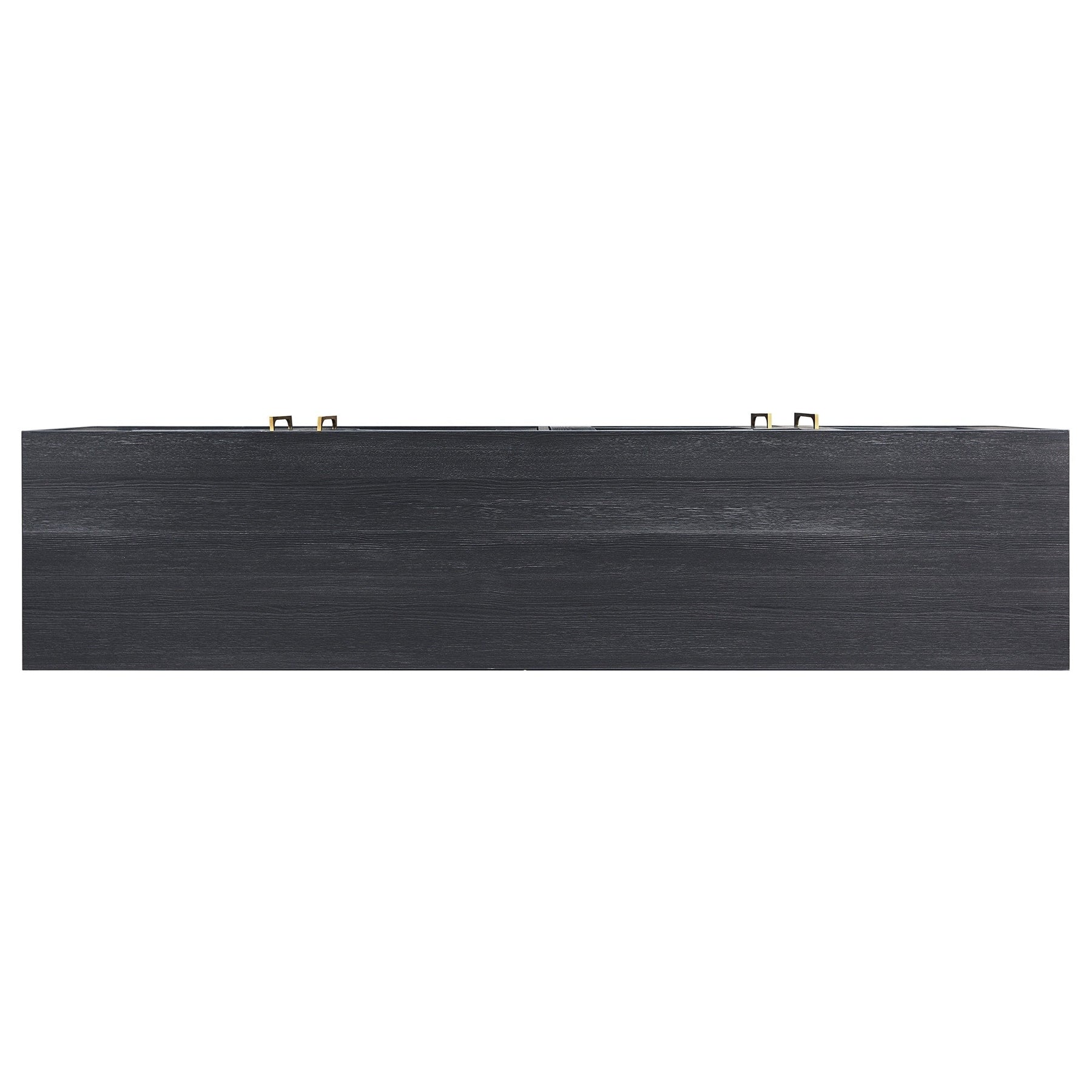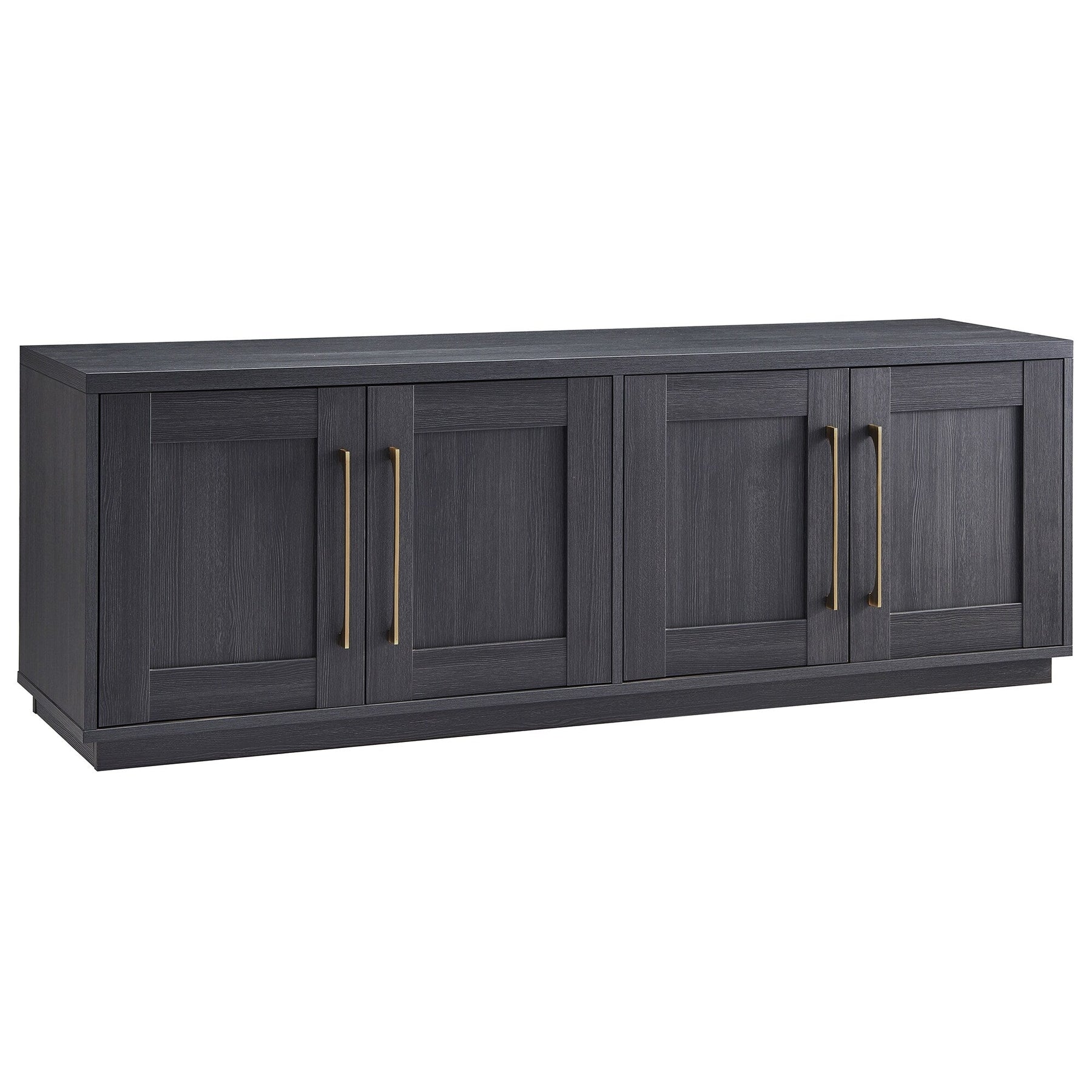 Combine functionality and classic transitional design with this modern TV stand. Its rich wood tone creates a warm neutral palette that will blend seamlessly into any color scheme, while its classic styling pairs perfectly with the existing design inspiration of your living room, den, or game room. This solid-backed stand features two large enclosed cabinets with sleek brass-finished hardware. Cable management cut-outs and adjustable inner shelves help keep your media storage and consoles organized.