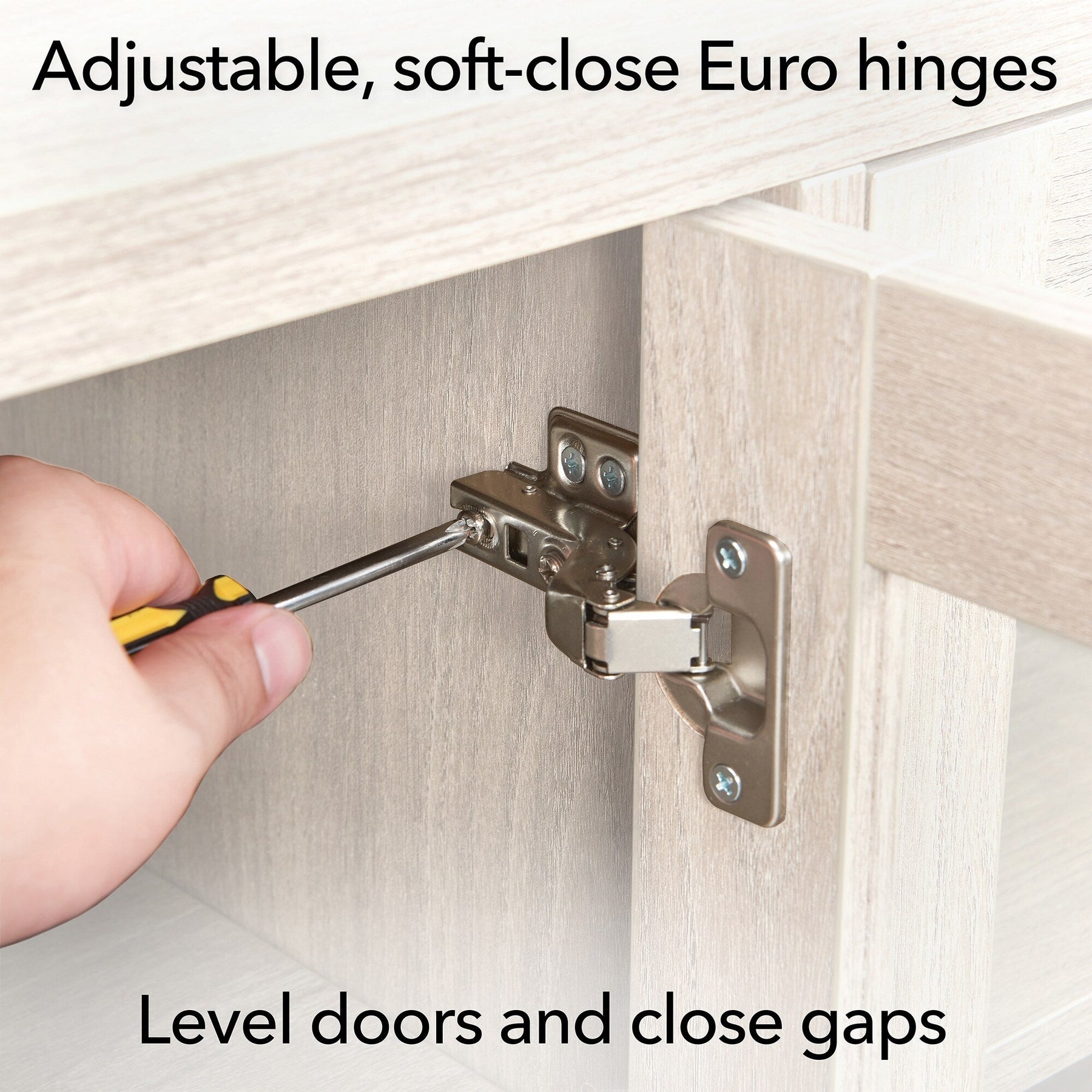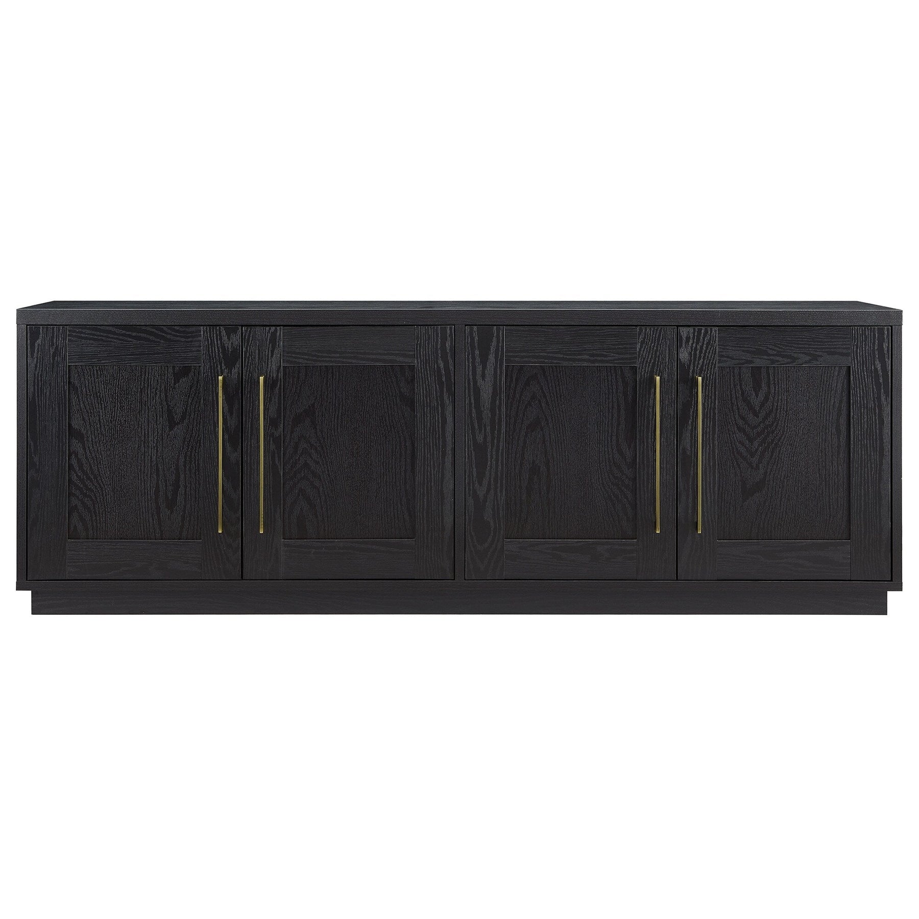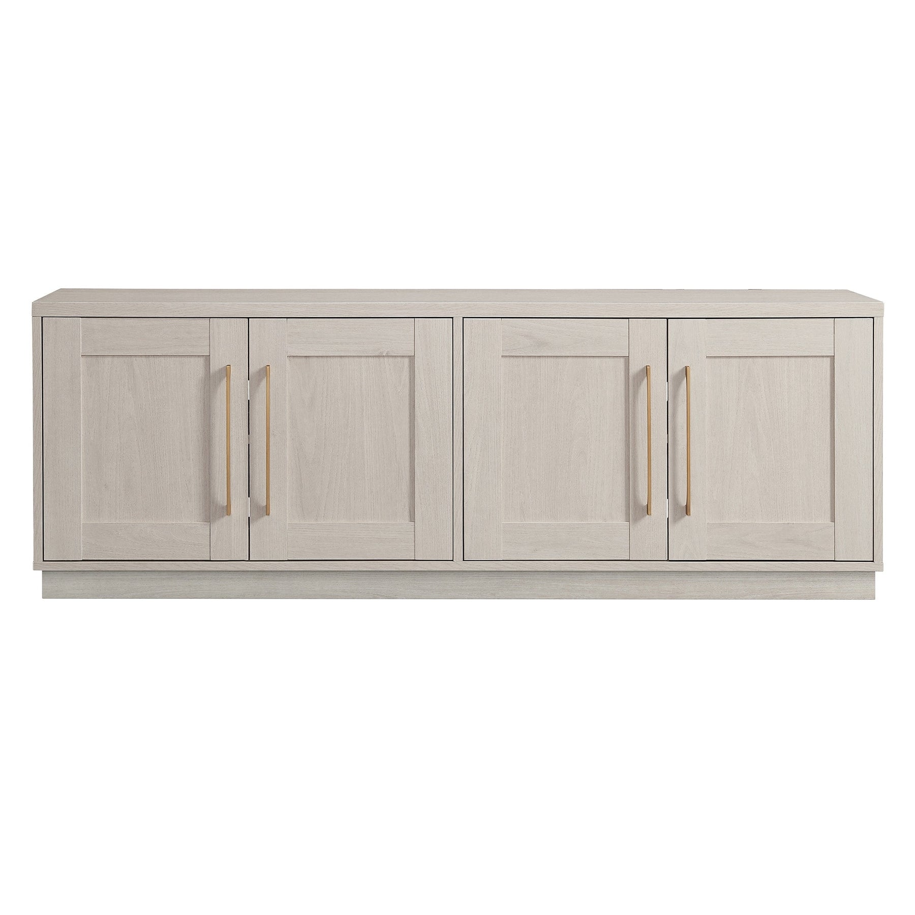 - Features four doors with enclosed cabinets and 4 shelves for ample storage.