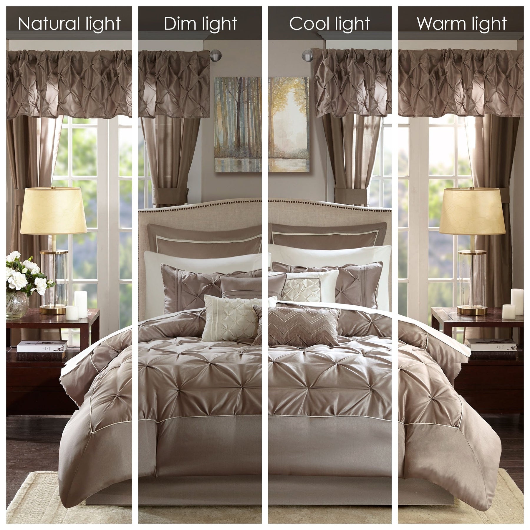 - Transitional 24 piece room in a bag features faux silk polyoni tufted with border frame
